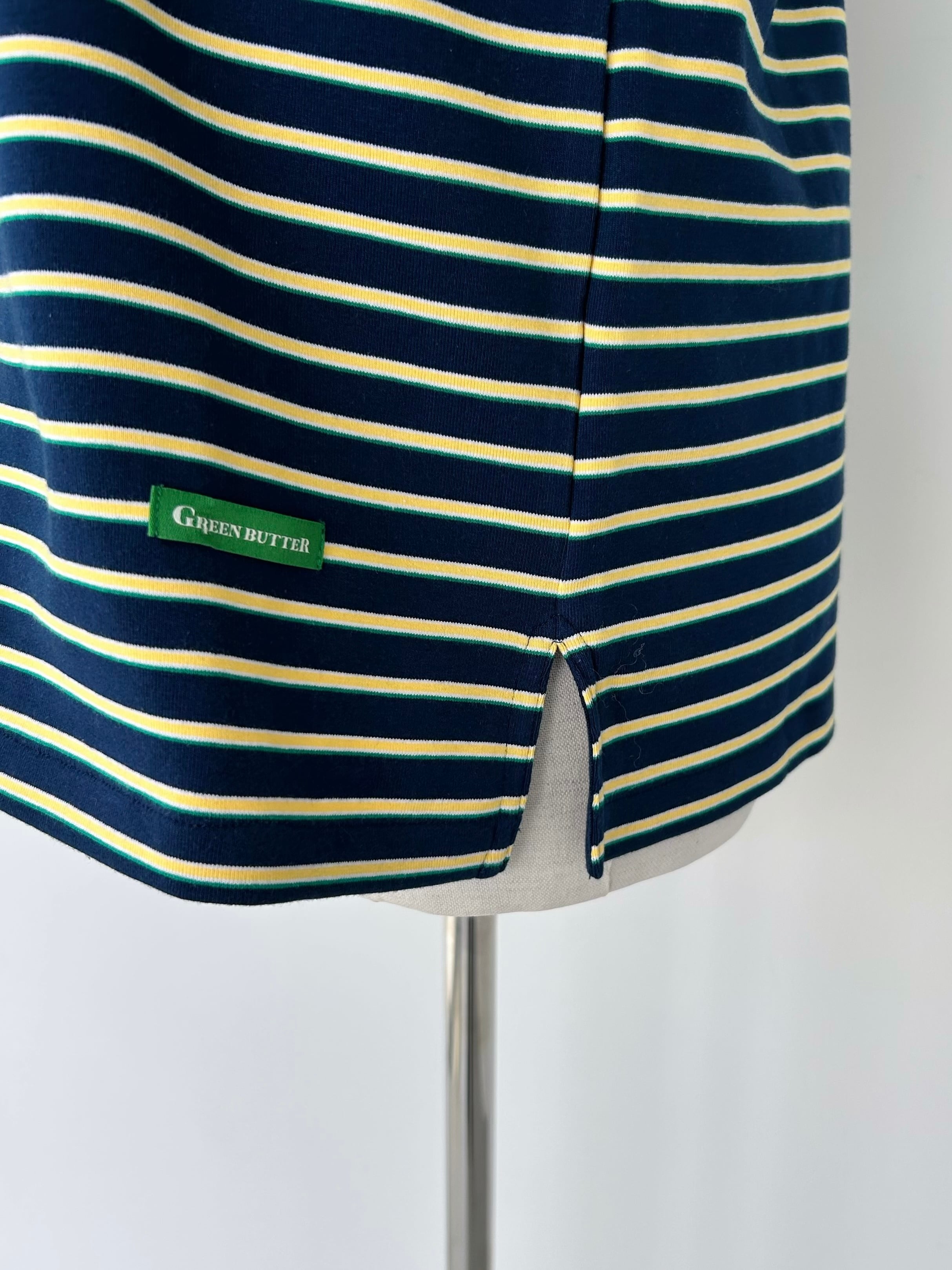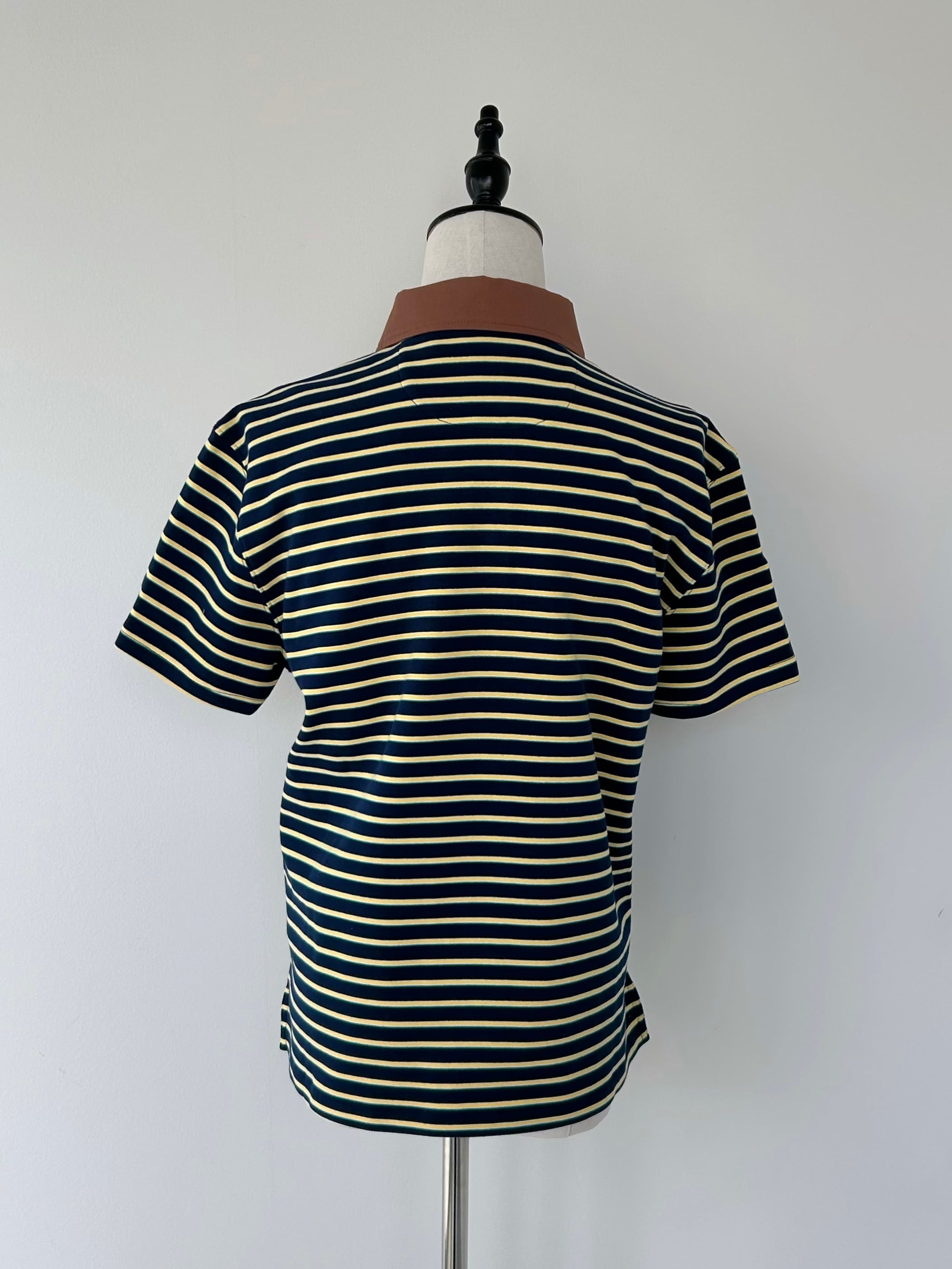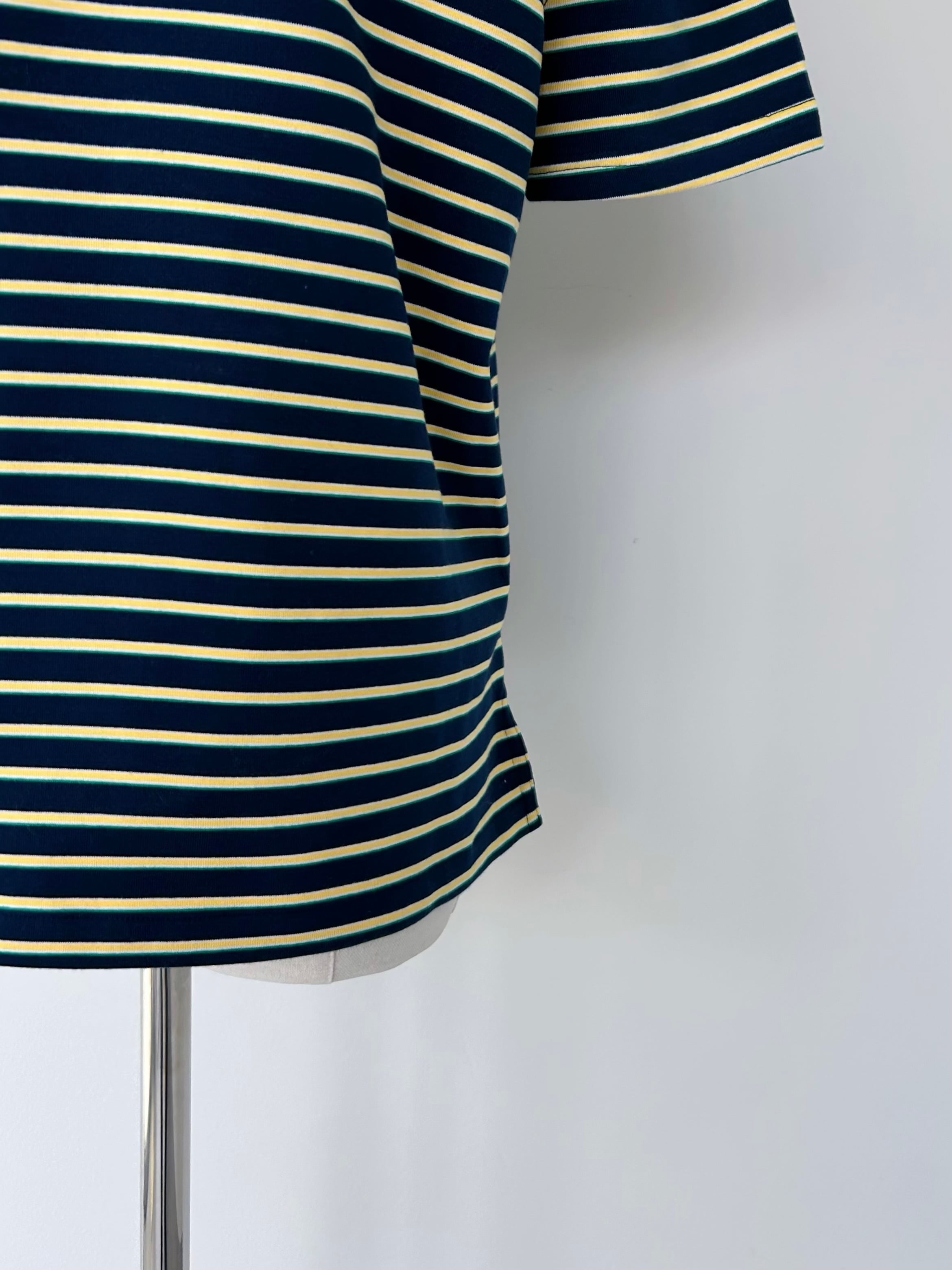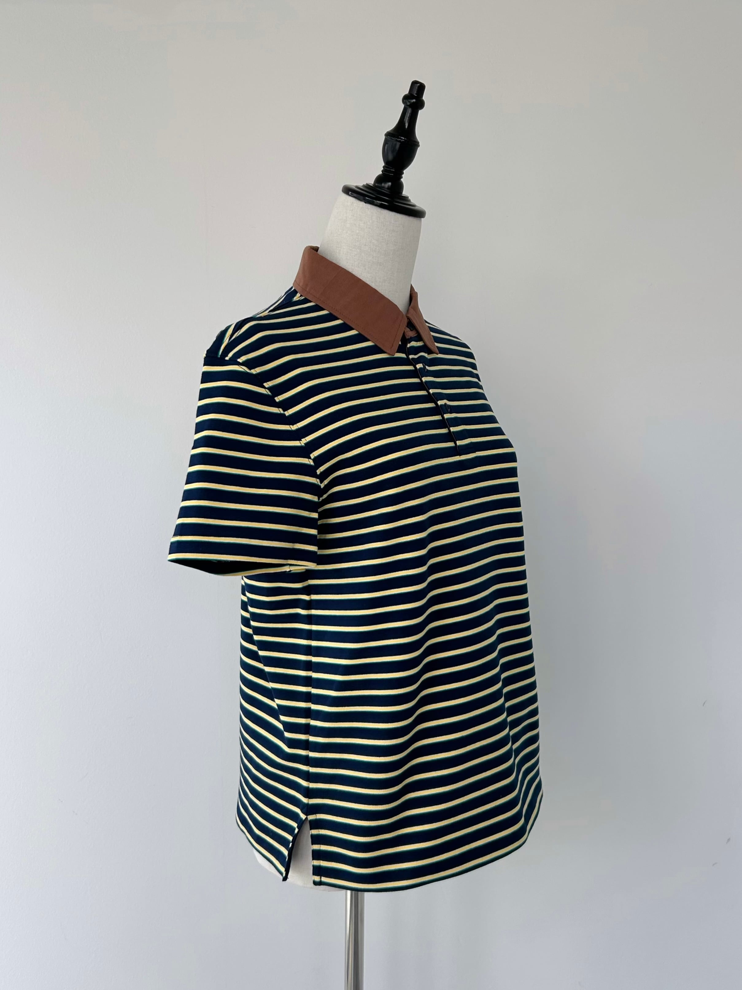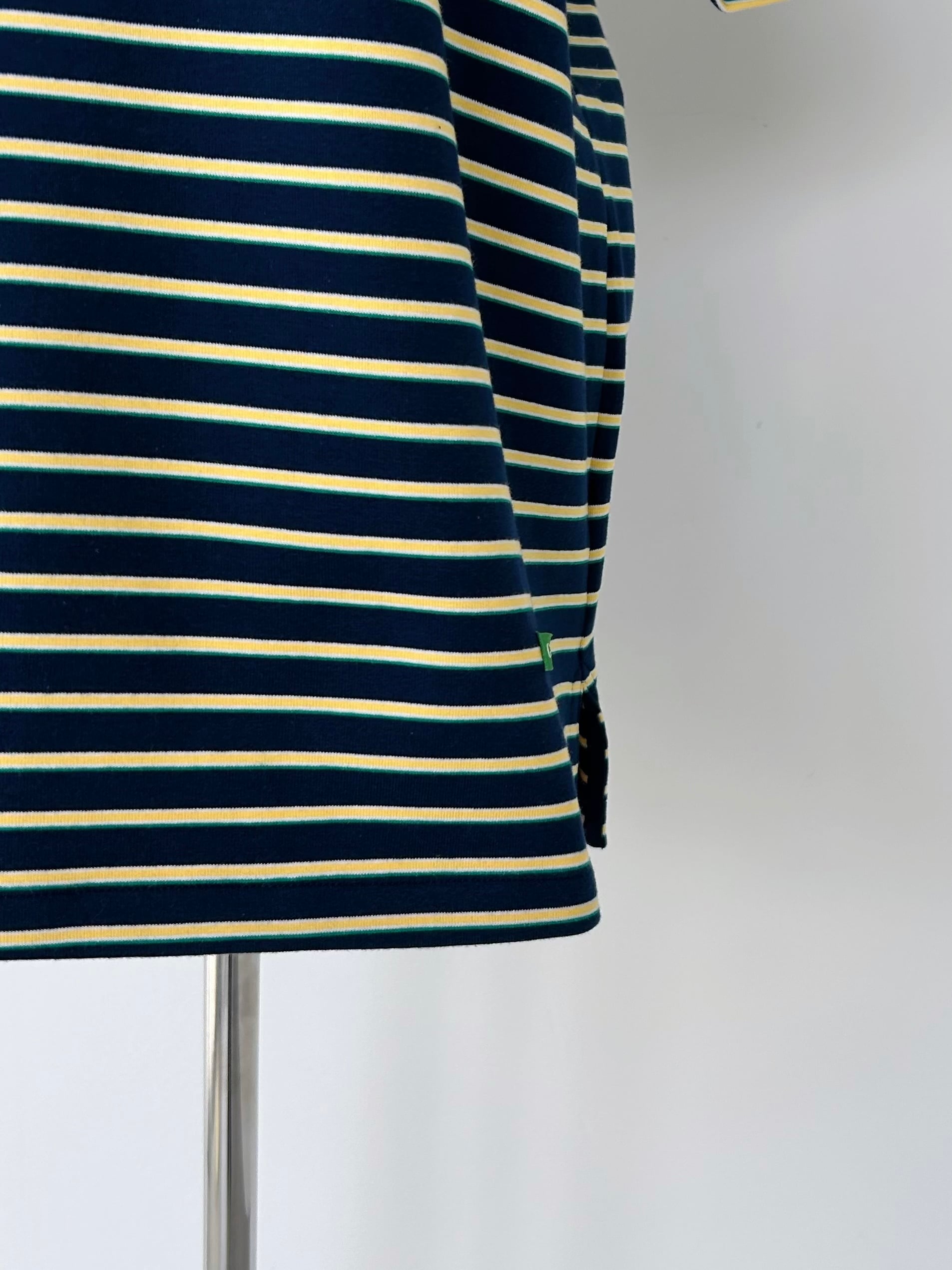 伸縮性に優れ、快適な着心地のストライプポロ。
