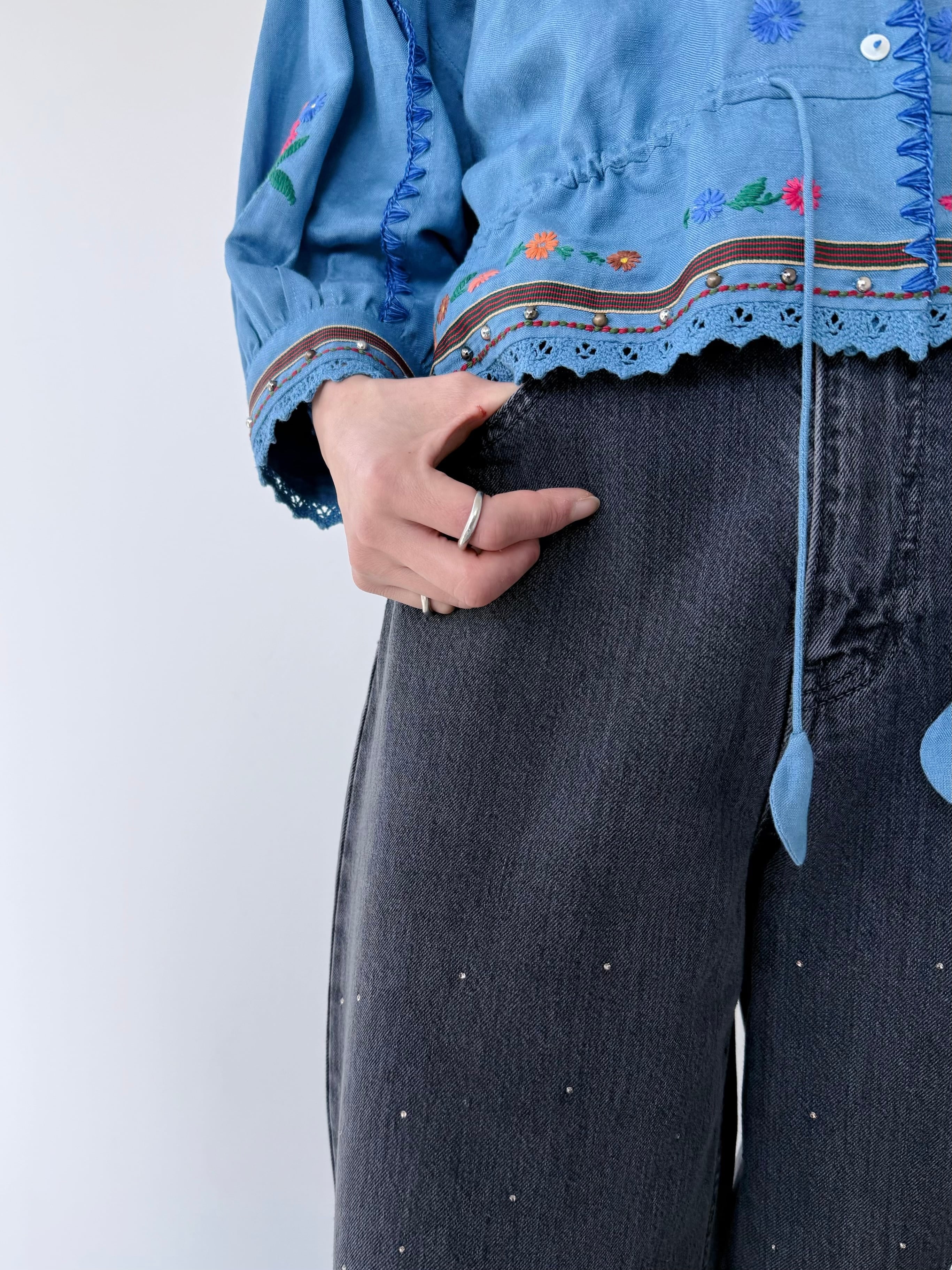 裾のスタッズでエッジを効かせ、細部までこだわりのディテールを詰め込んだスペシャルなアイテム。