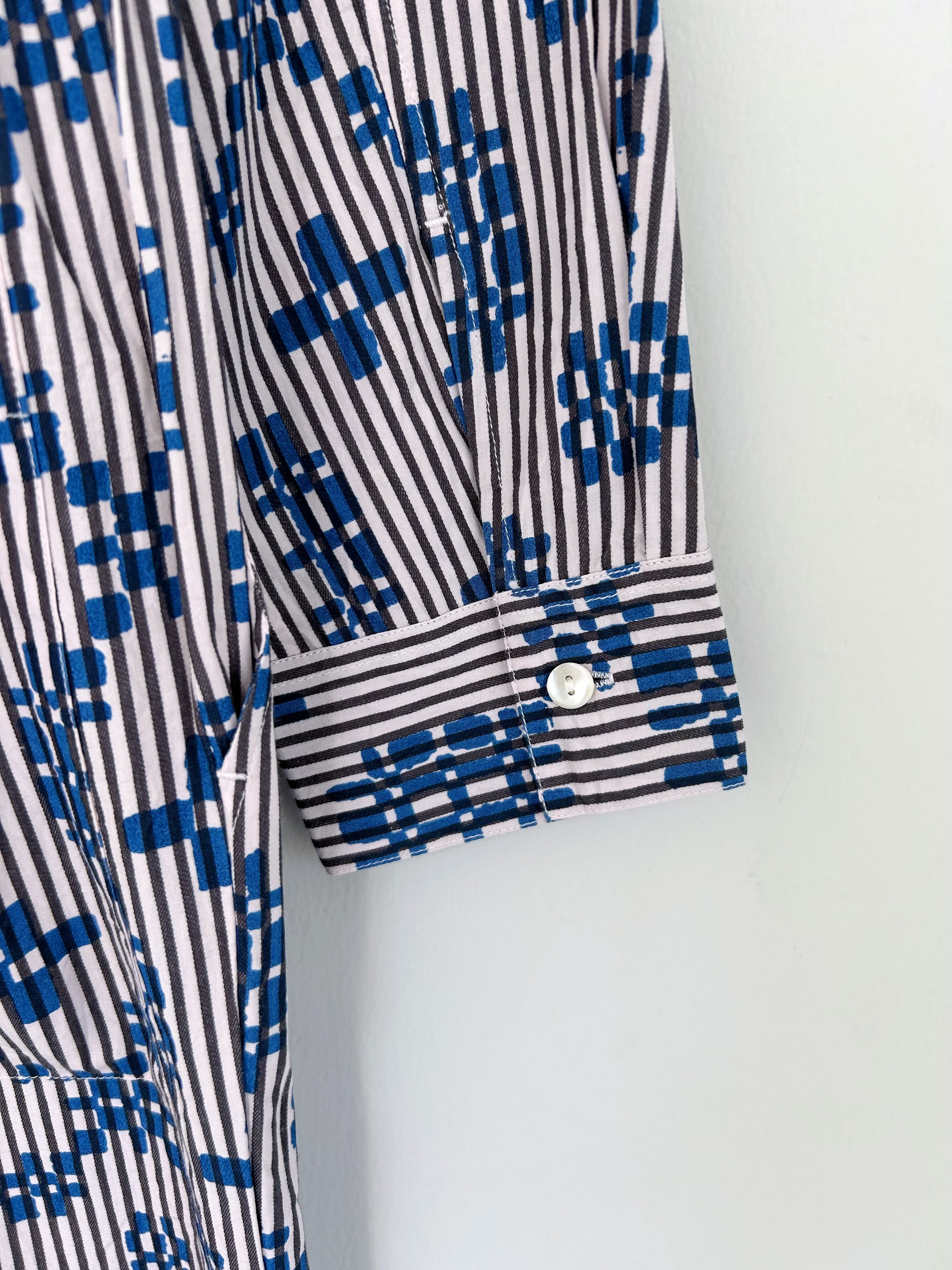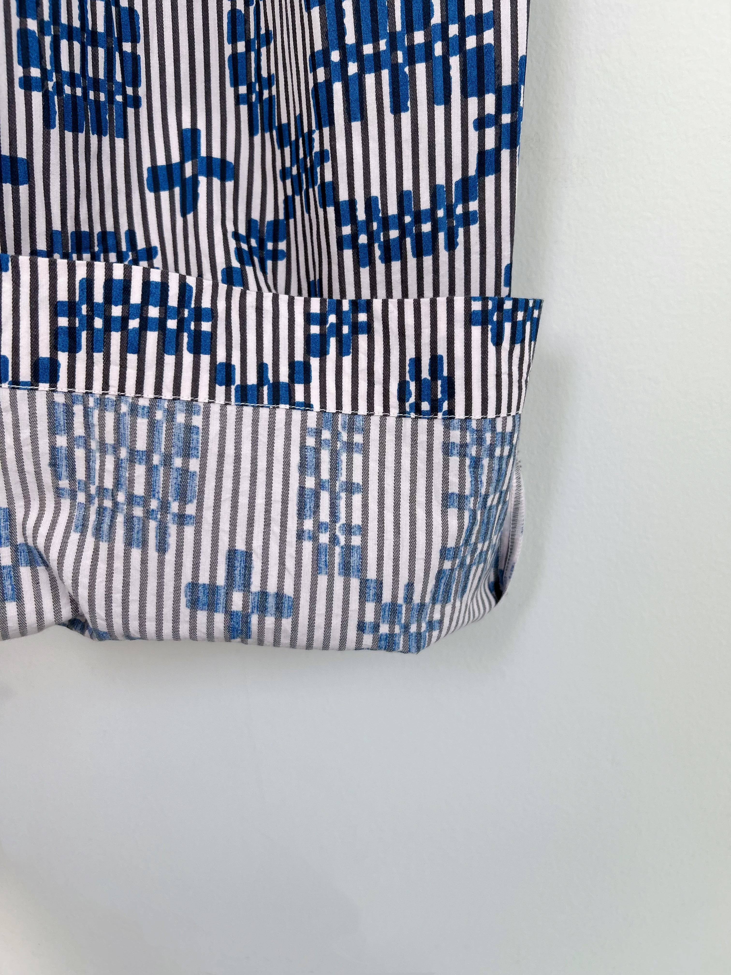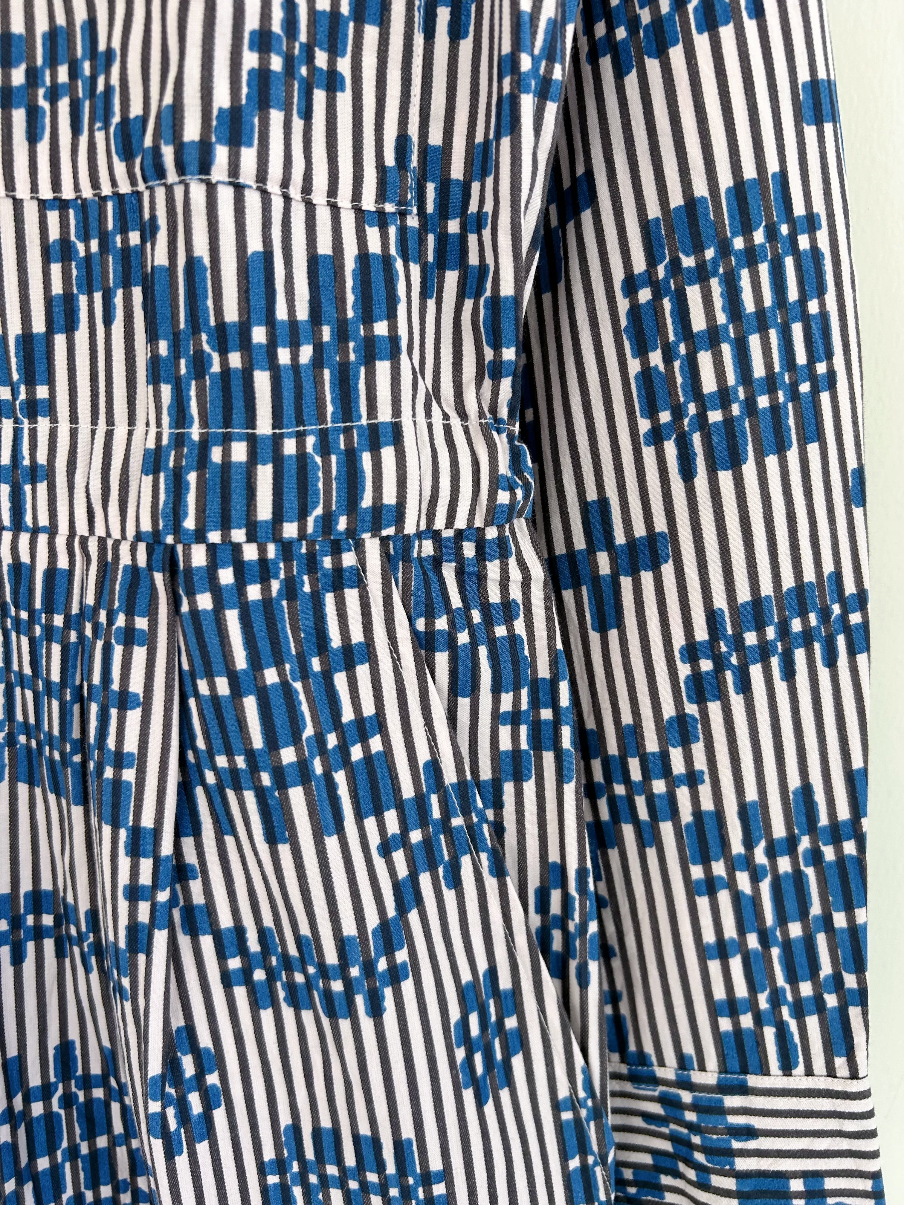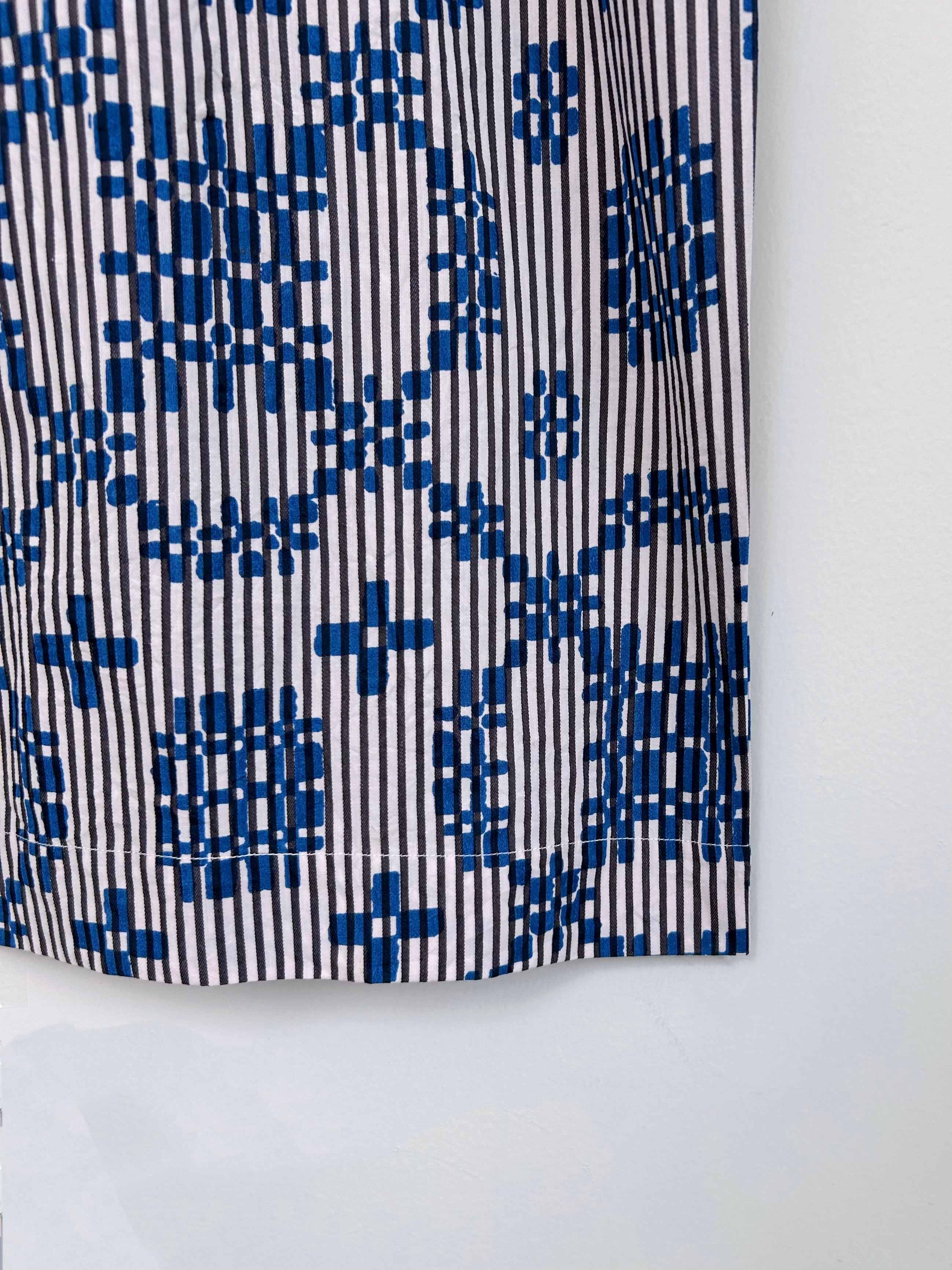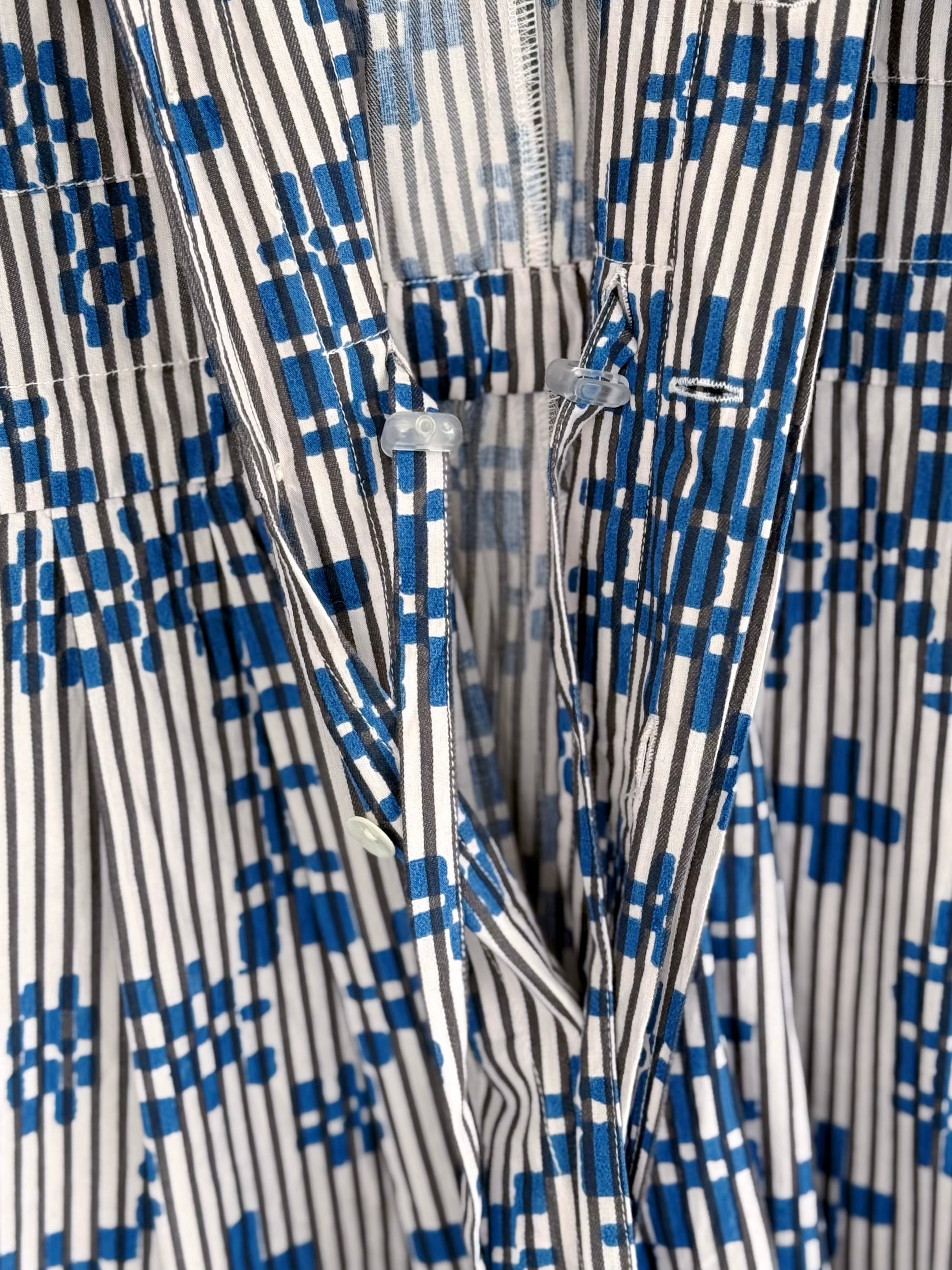 ハリのあるコットン100%のストライプ生地にオリジナルプリントを施したオールインワン。