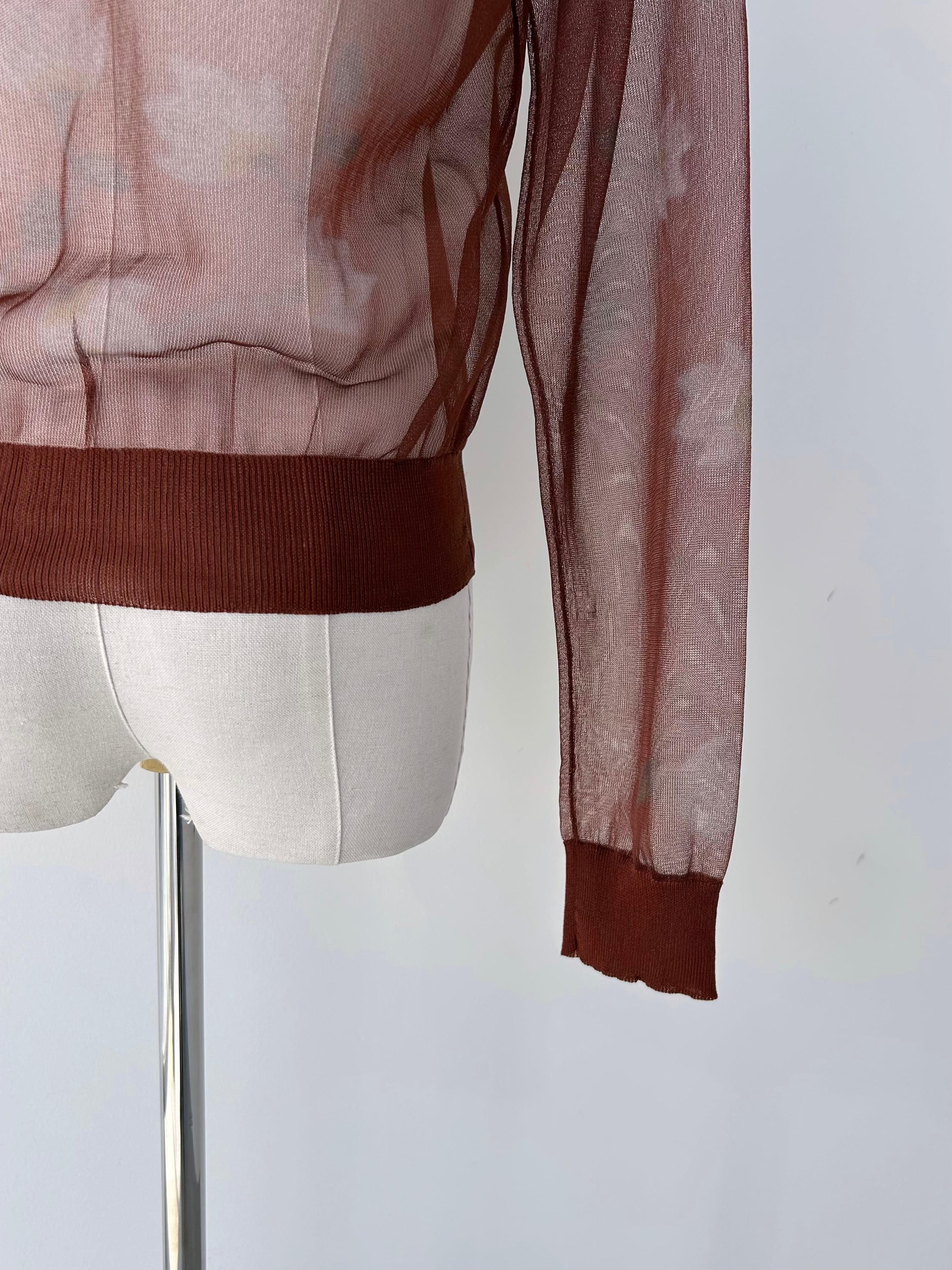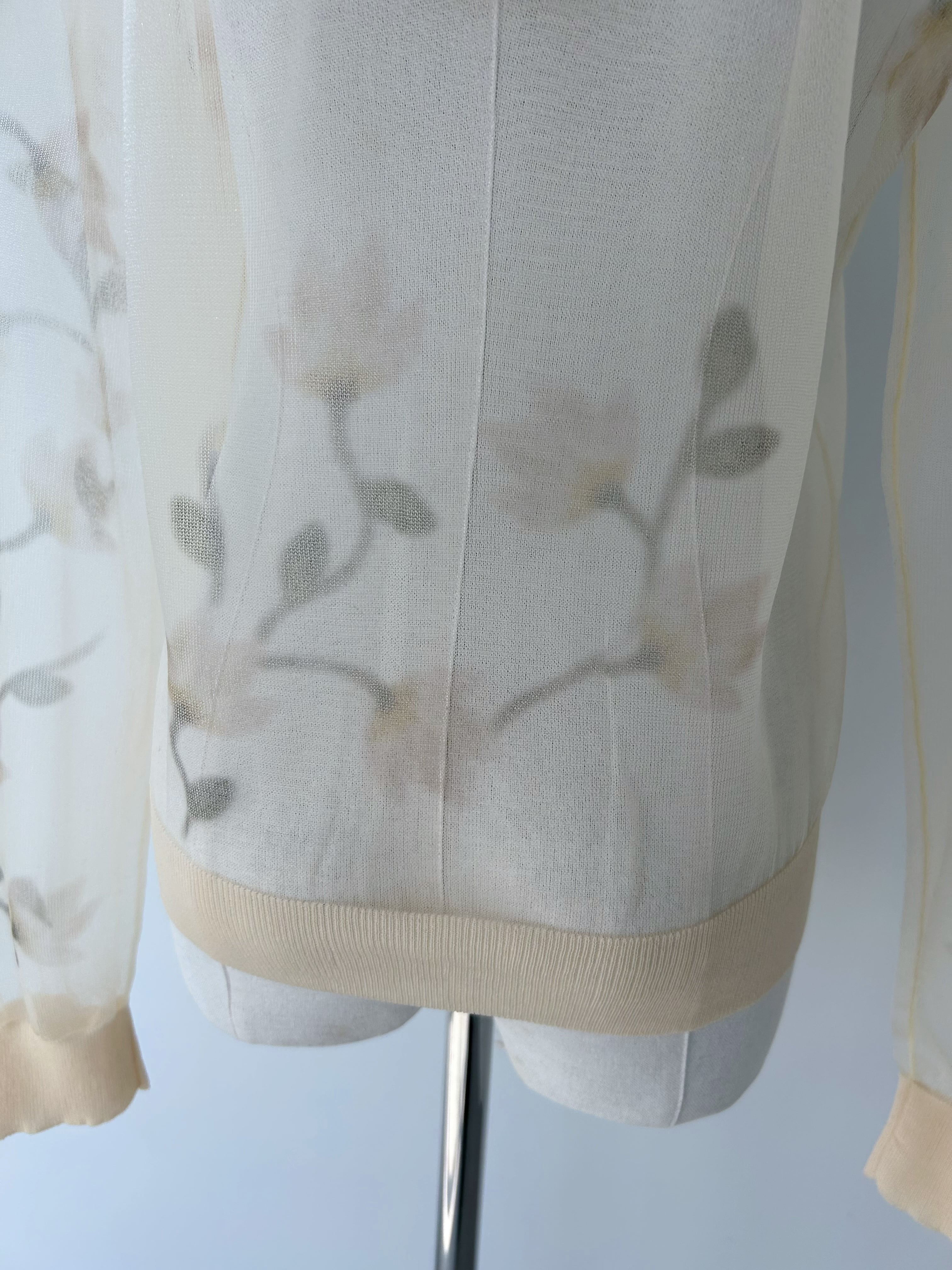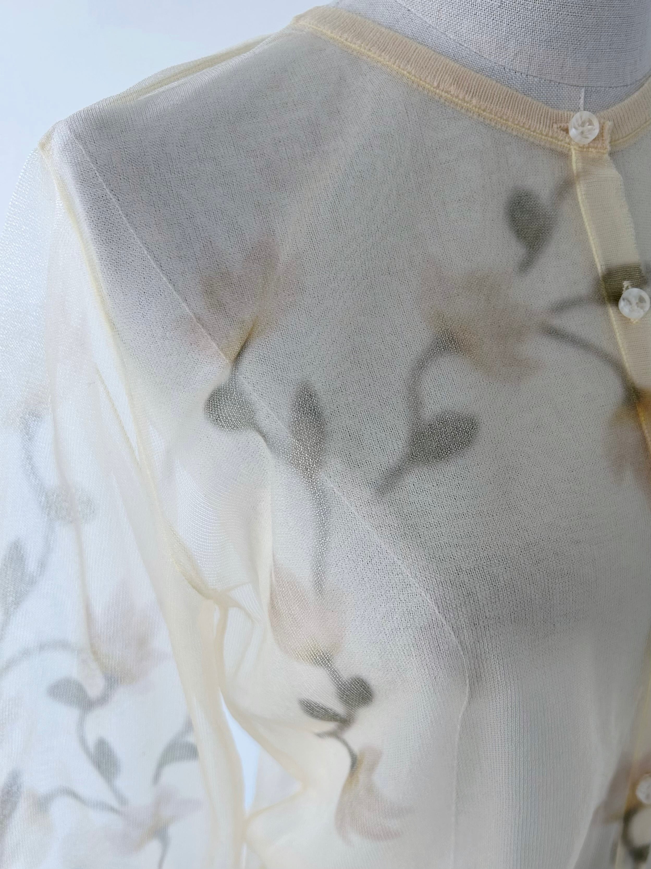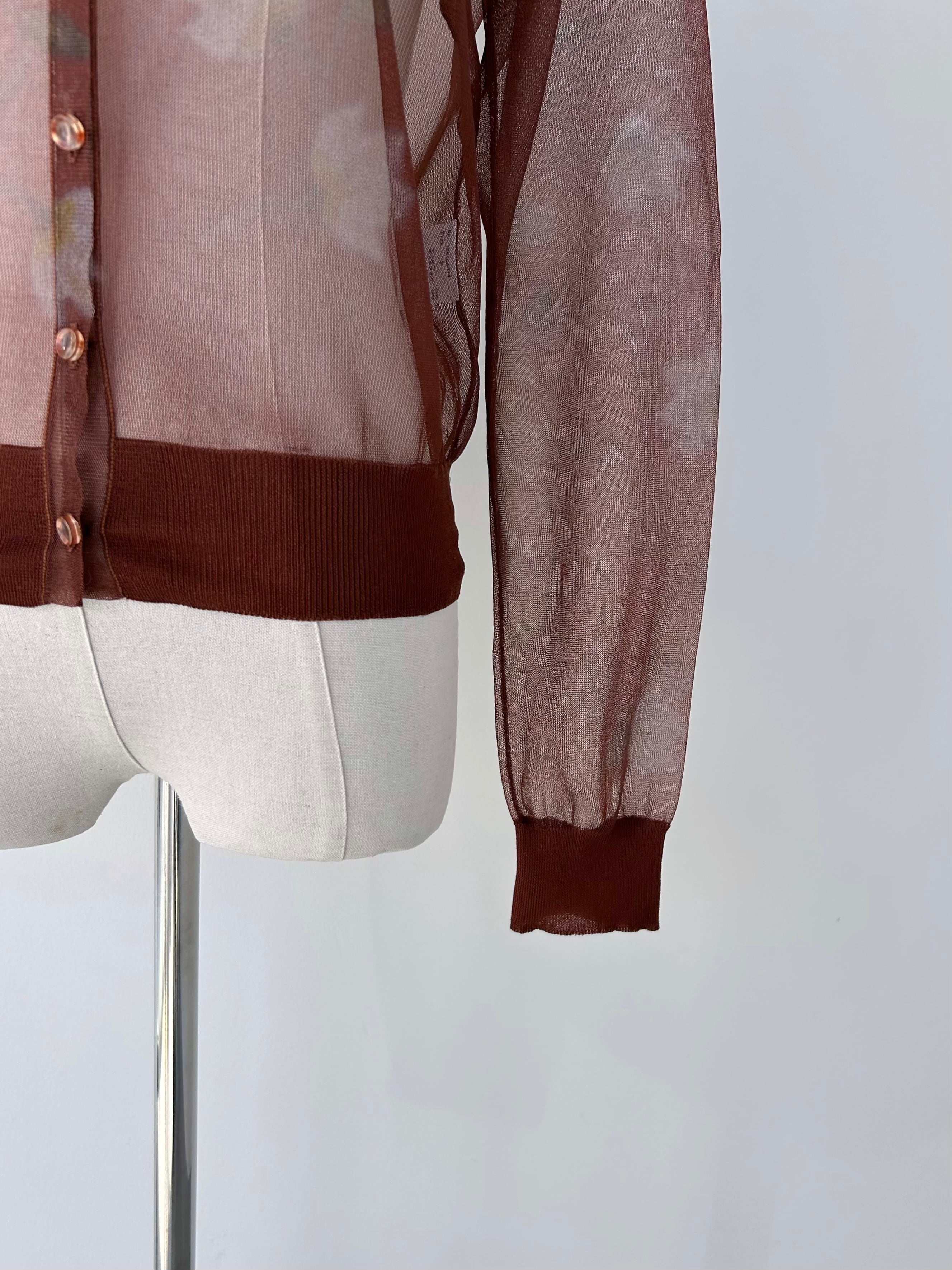 オリジナルの花柄を作成し、ニットにぼかしプリントを施したカーディガン。