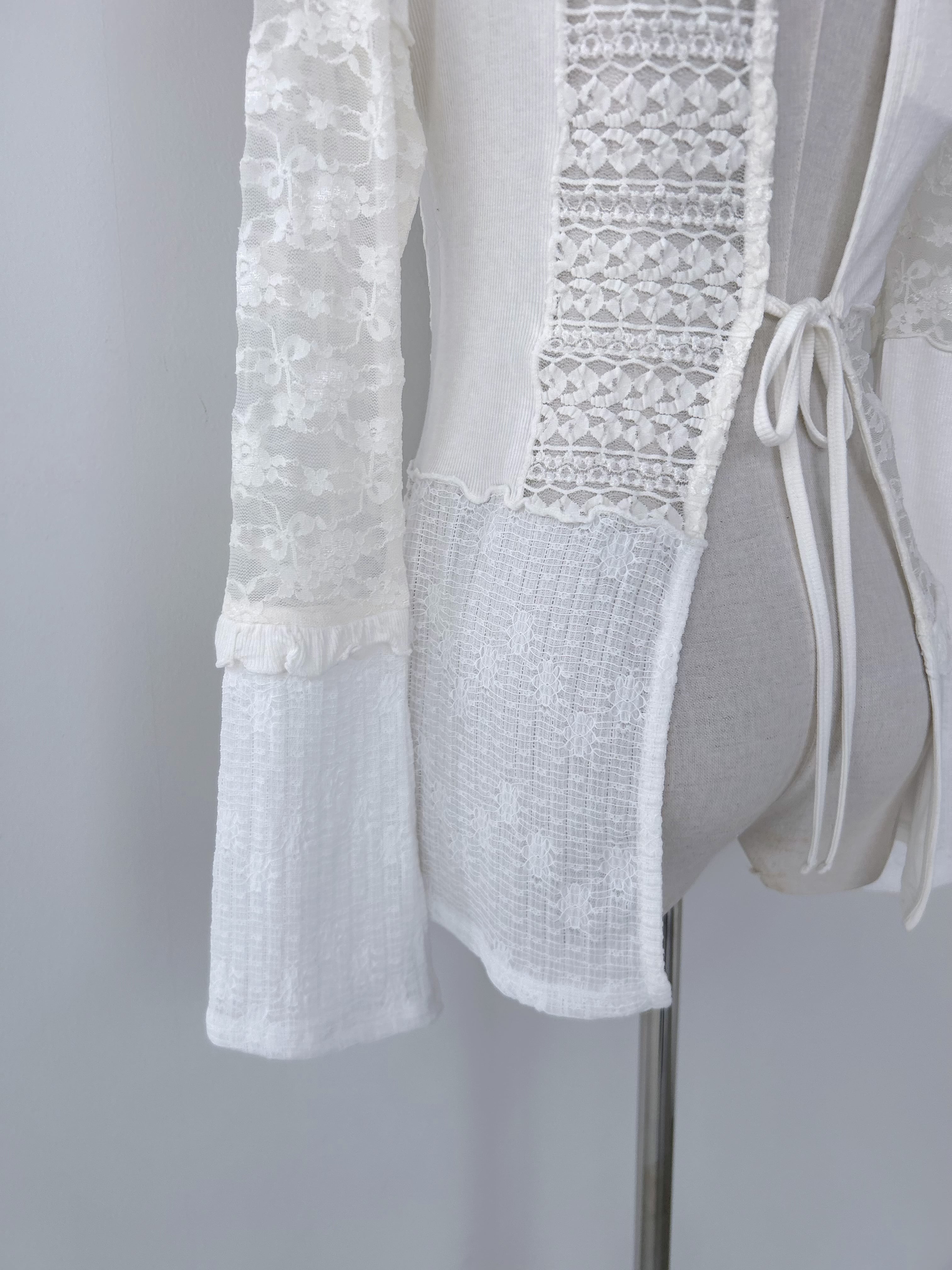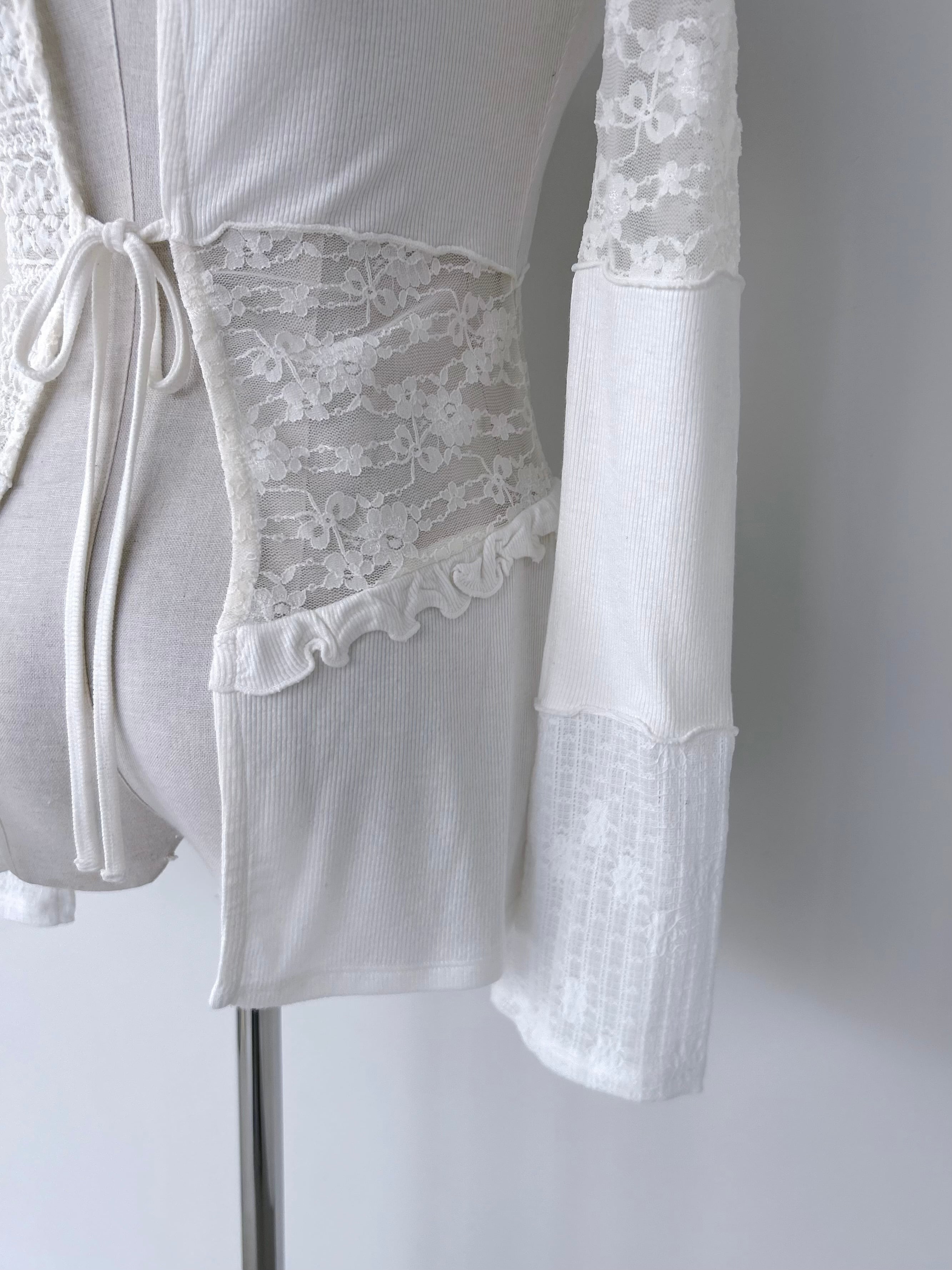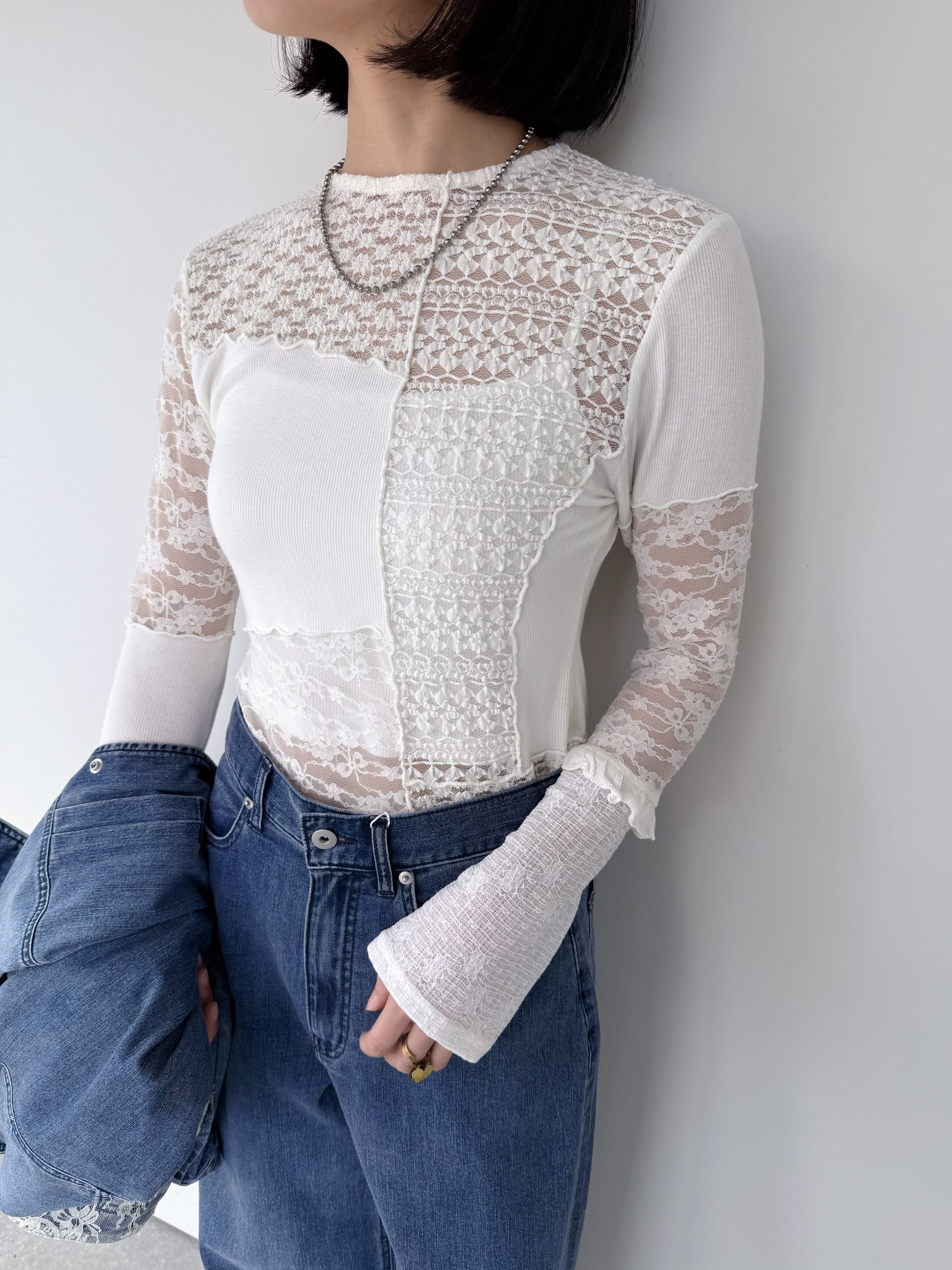 花柄やリボン柄など数種類のレース生地と、繊細なリブ生地を組み合わせた素材感がポイントのインナートップス。