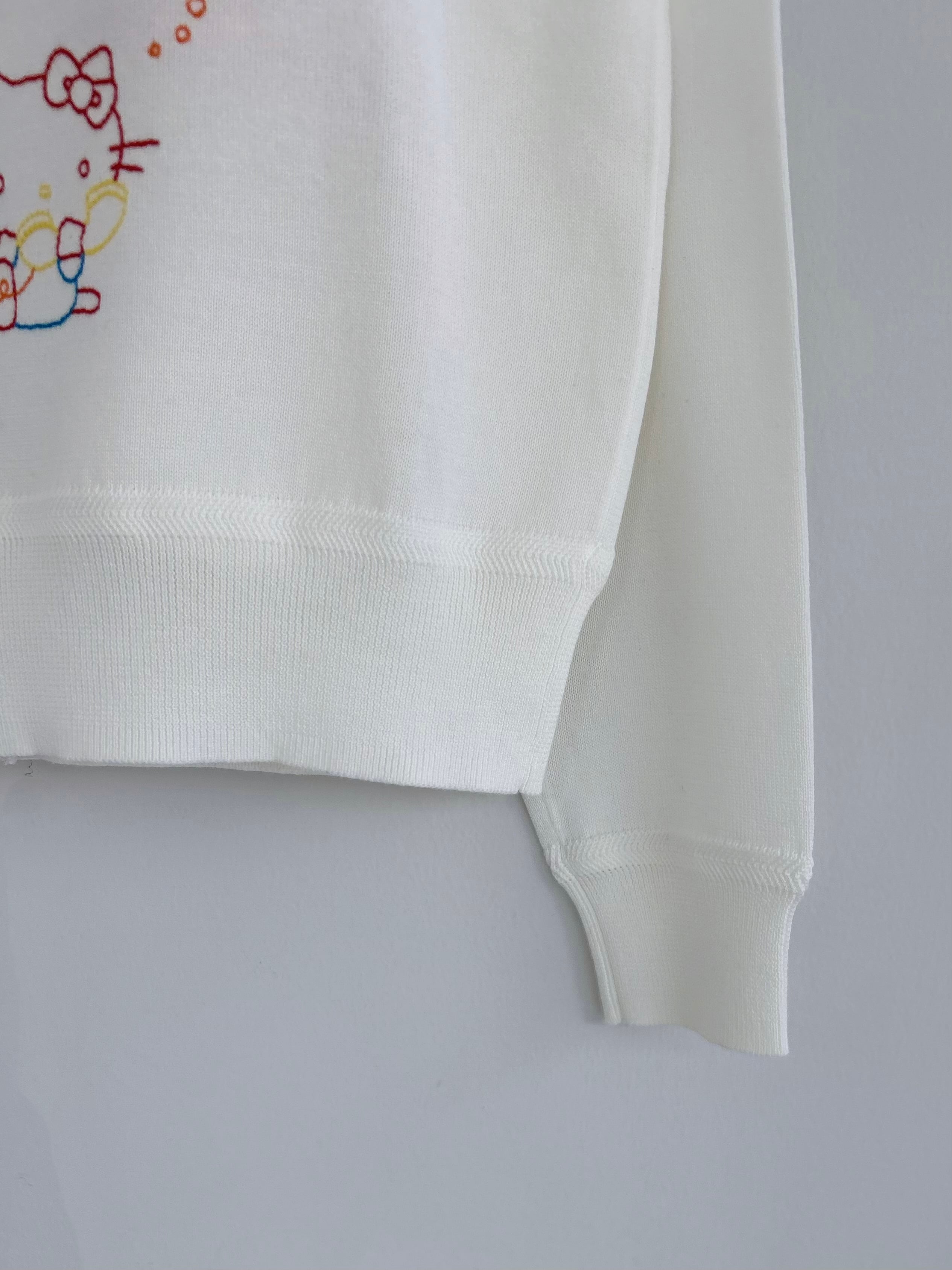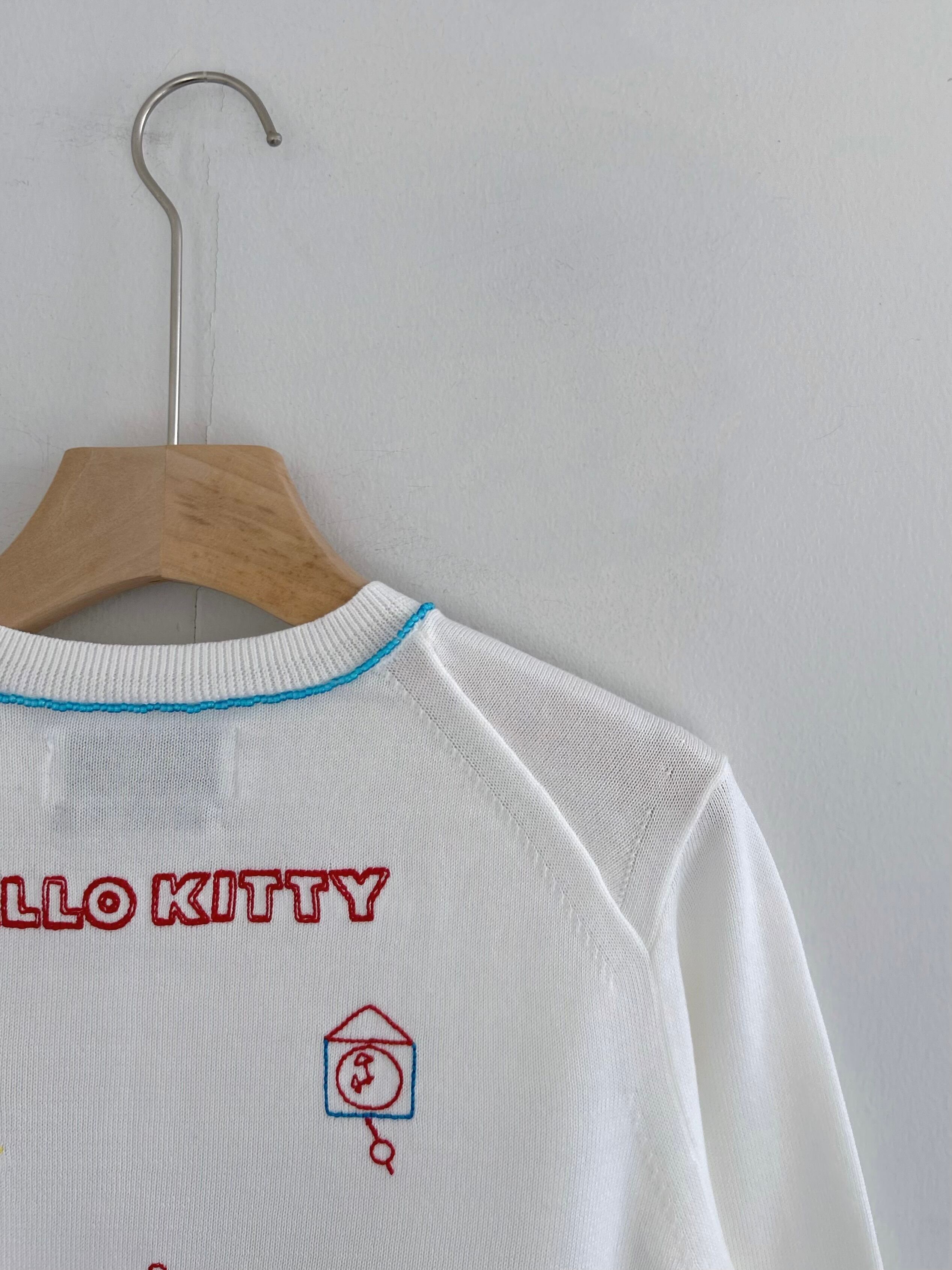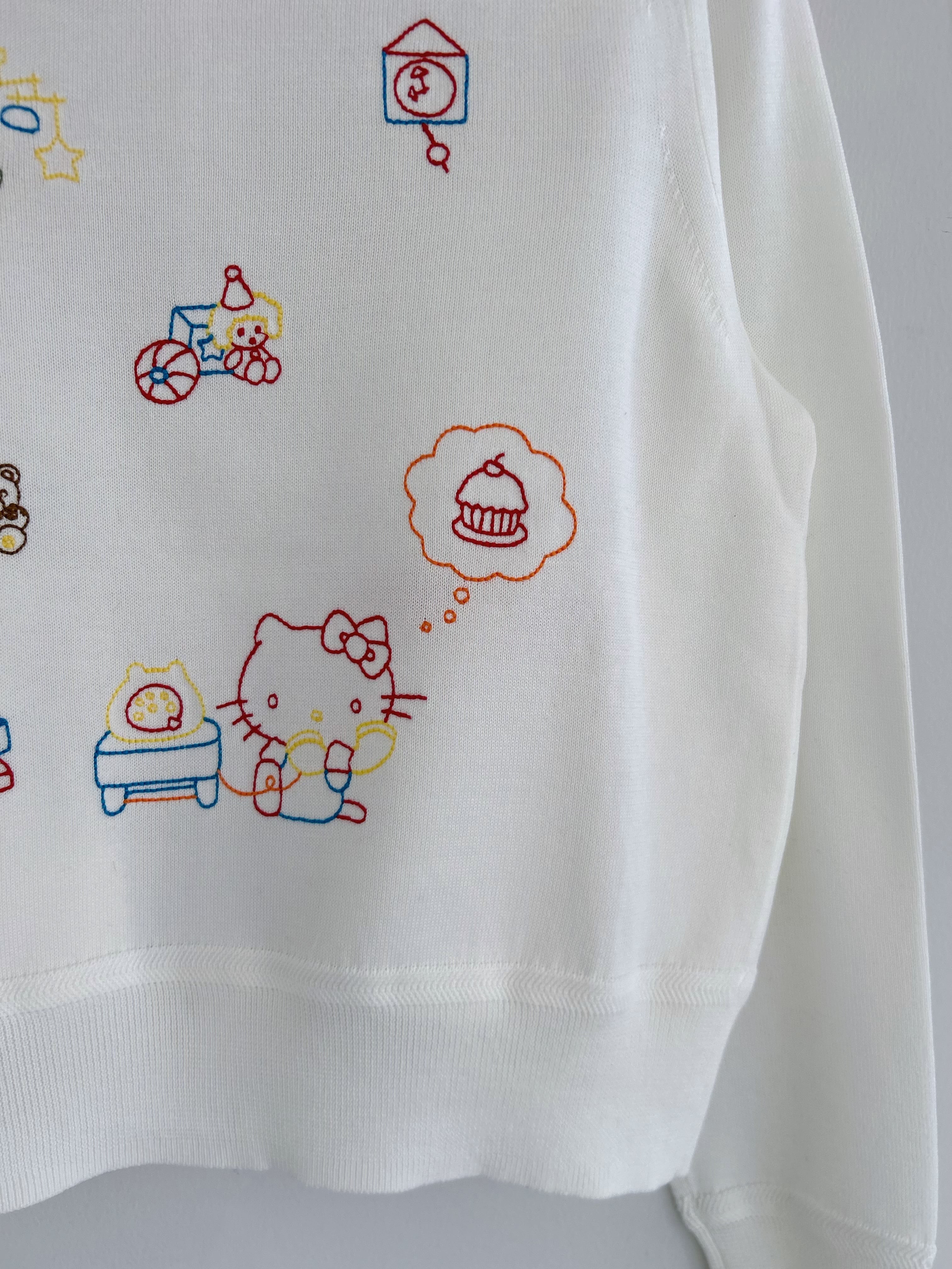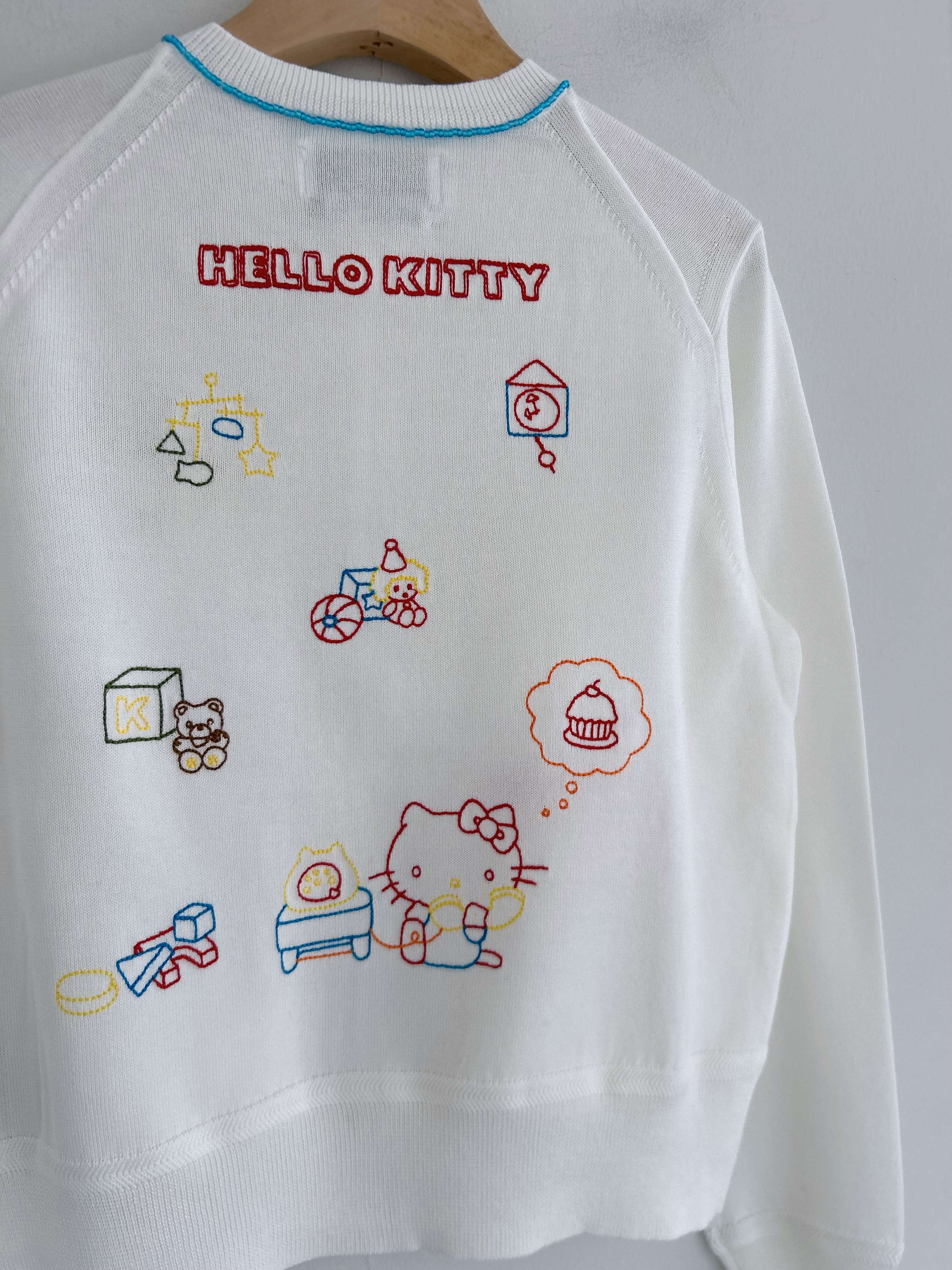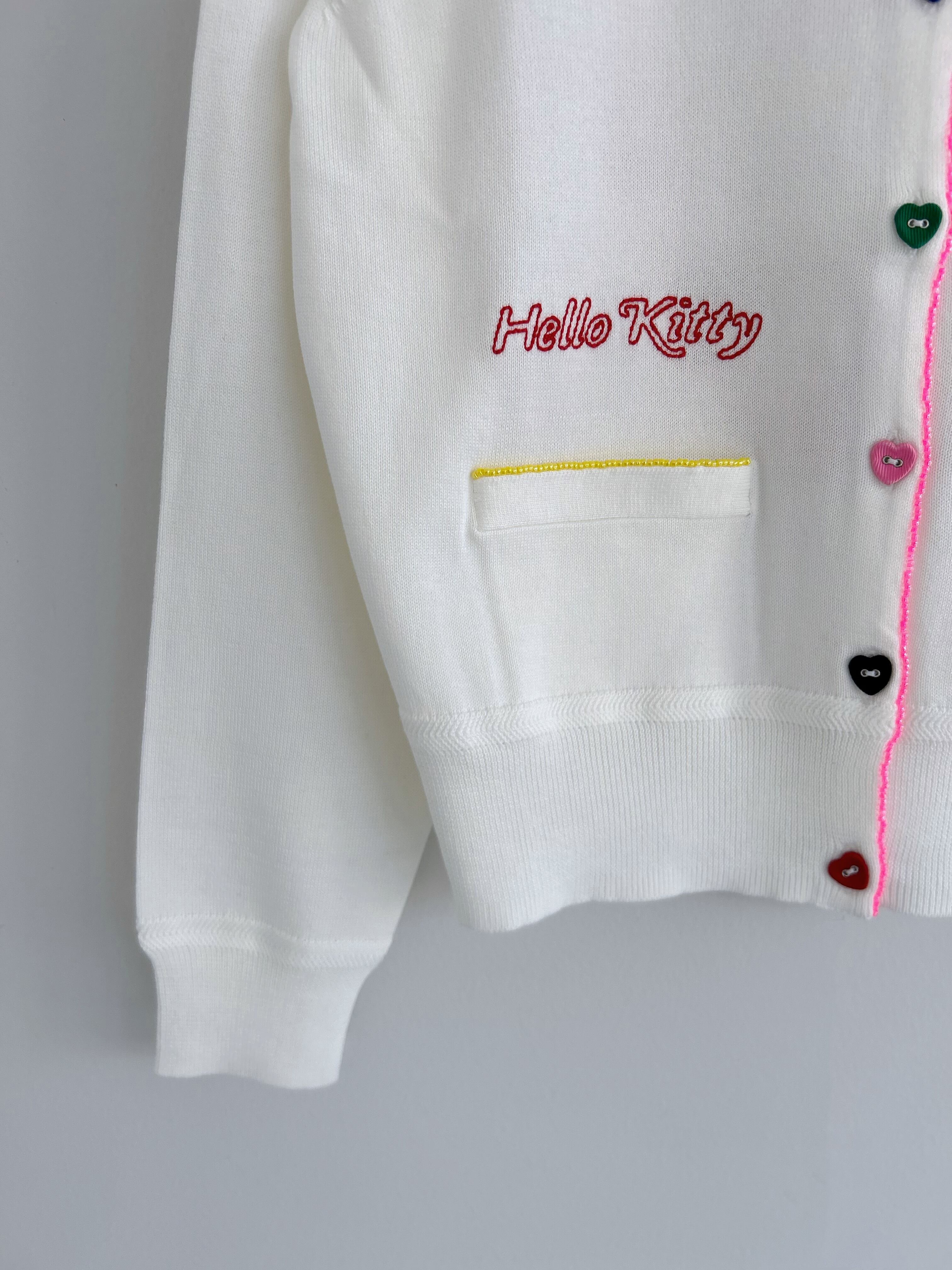 ハローキティの刺繍を贅沢に刺繍したUネックカーディガン。