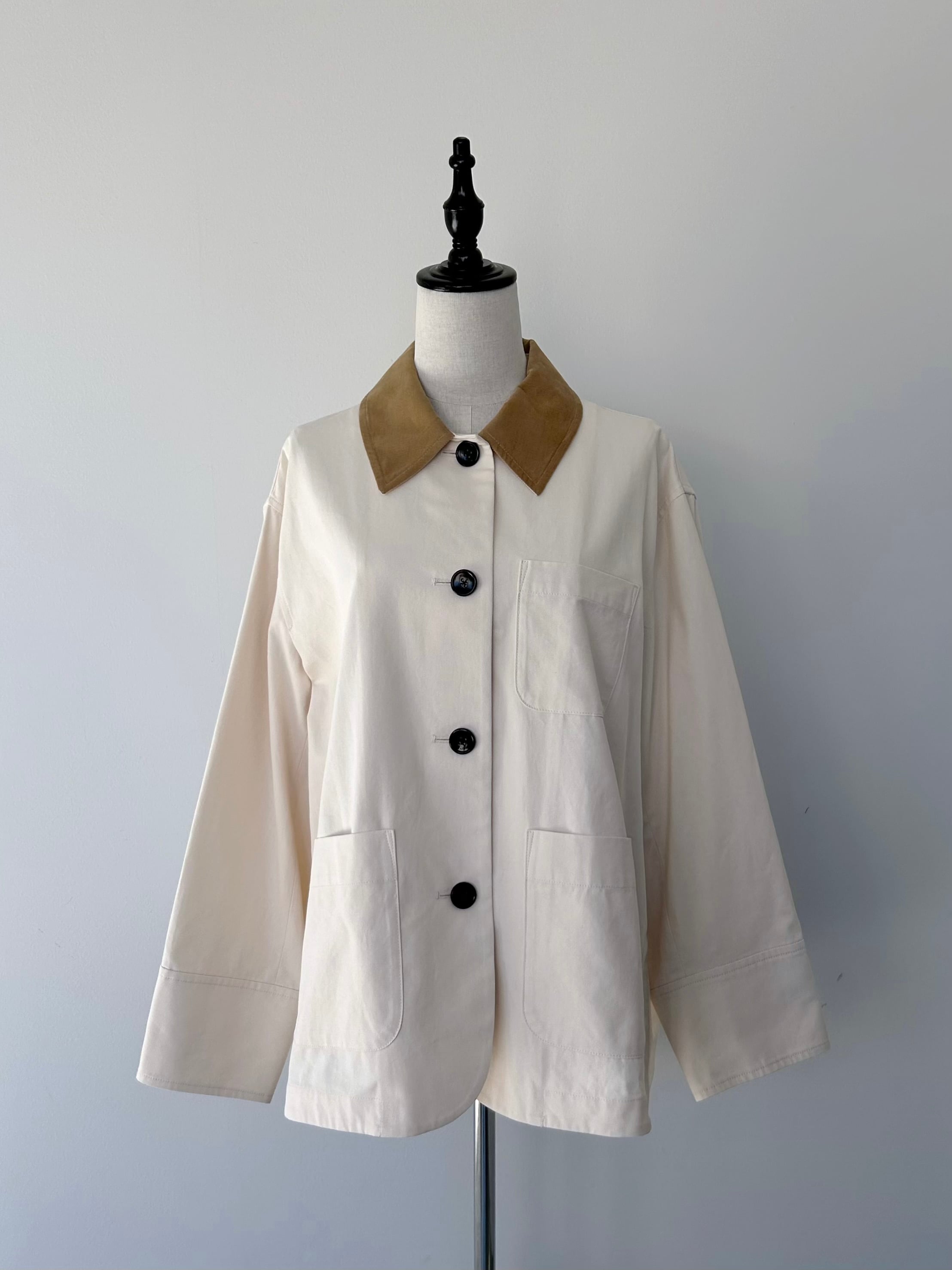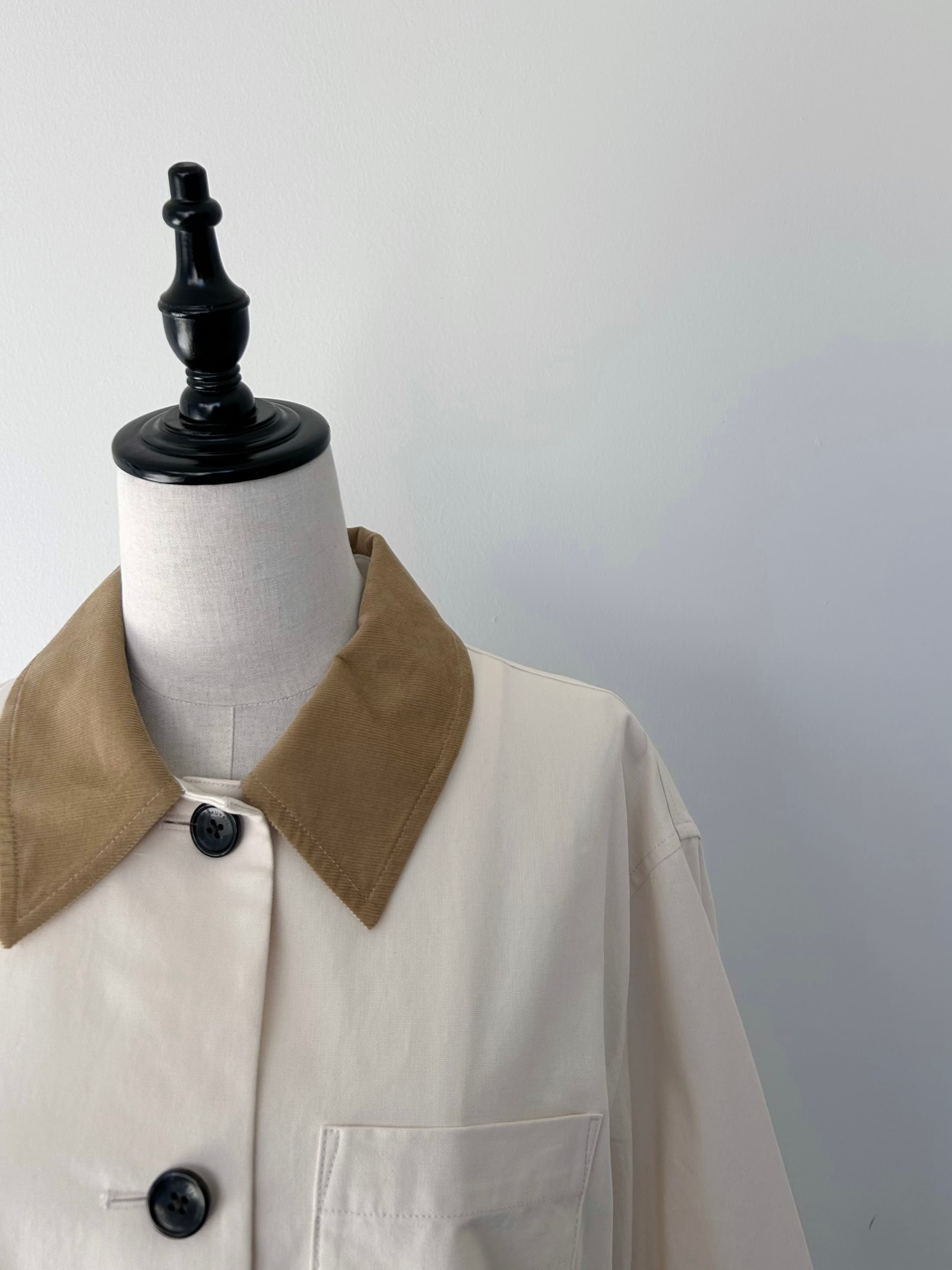 ホースライディングジャケットをベースに襟にはコーデュロイを施した。