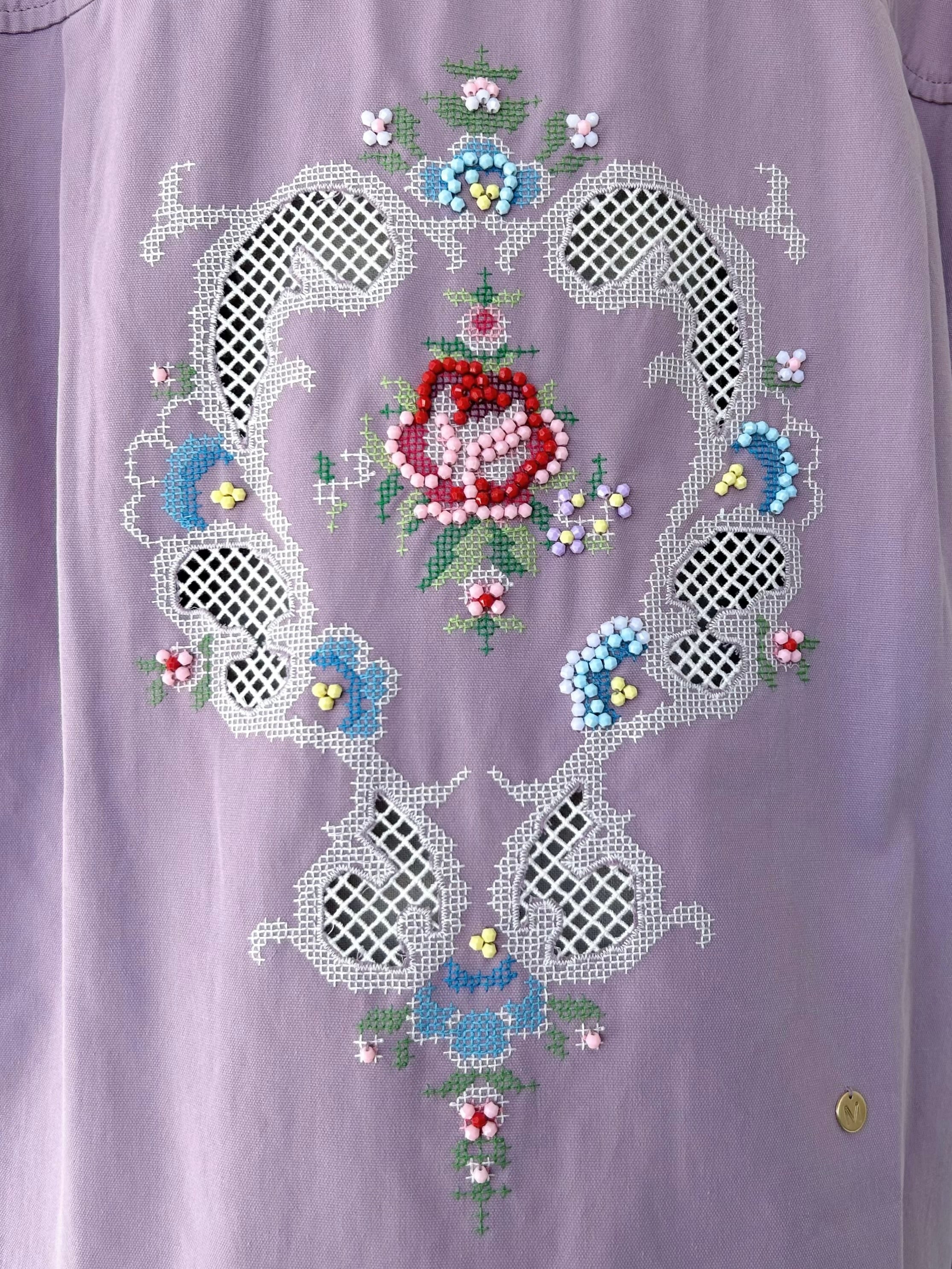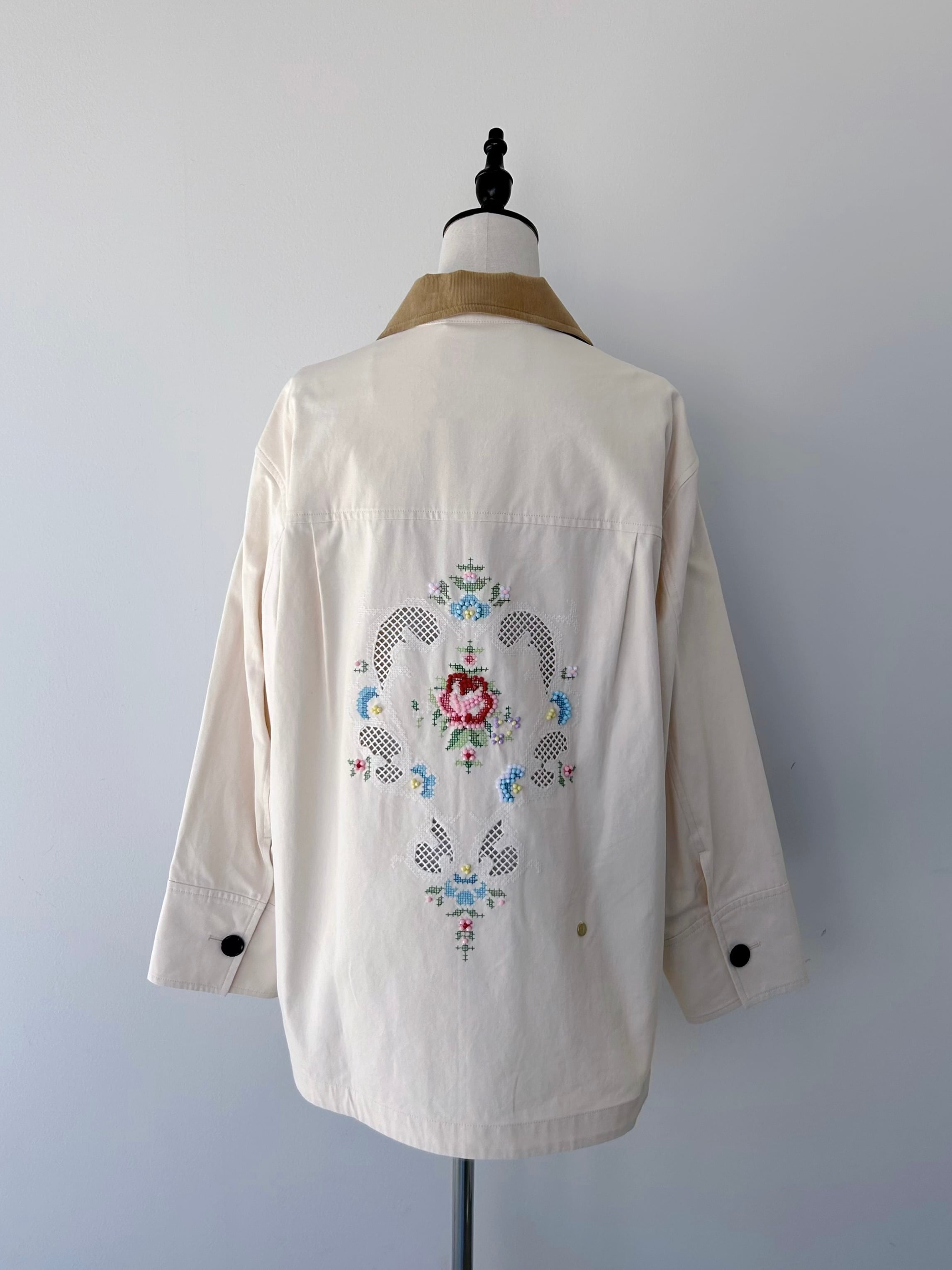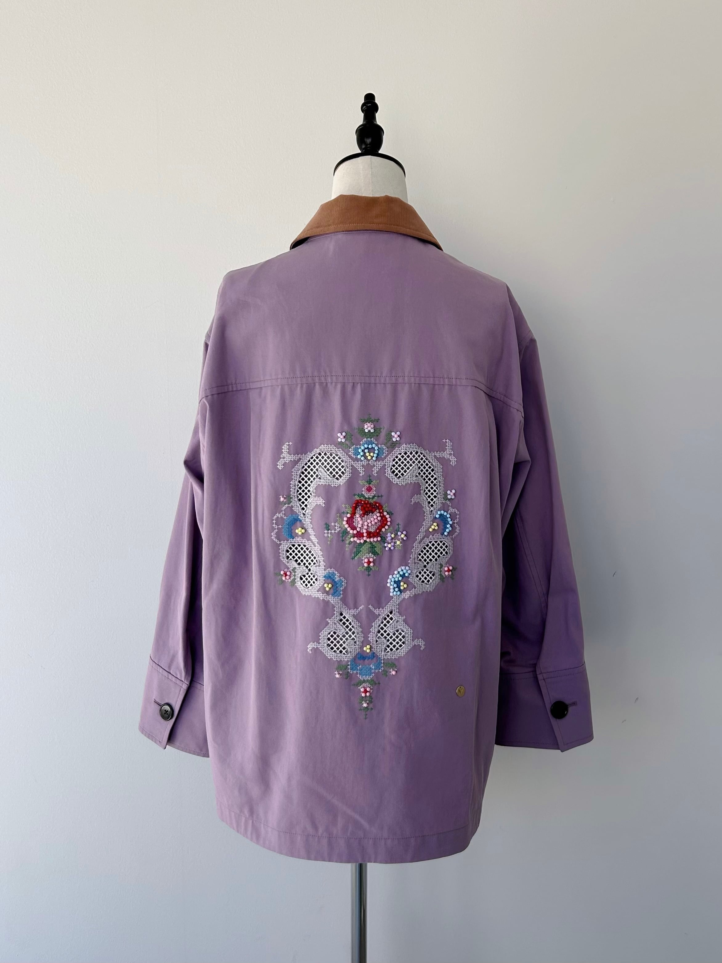 エリザベート皇妃の時代に流行したプチポアンをイメージした刺繍を背中に施したジャケット。