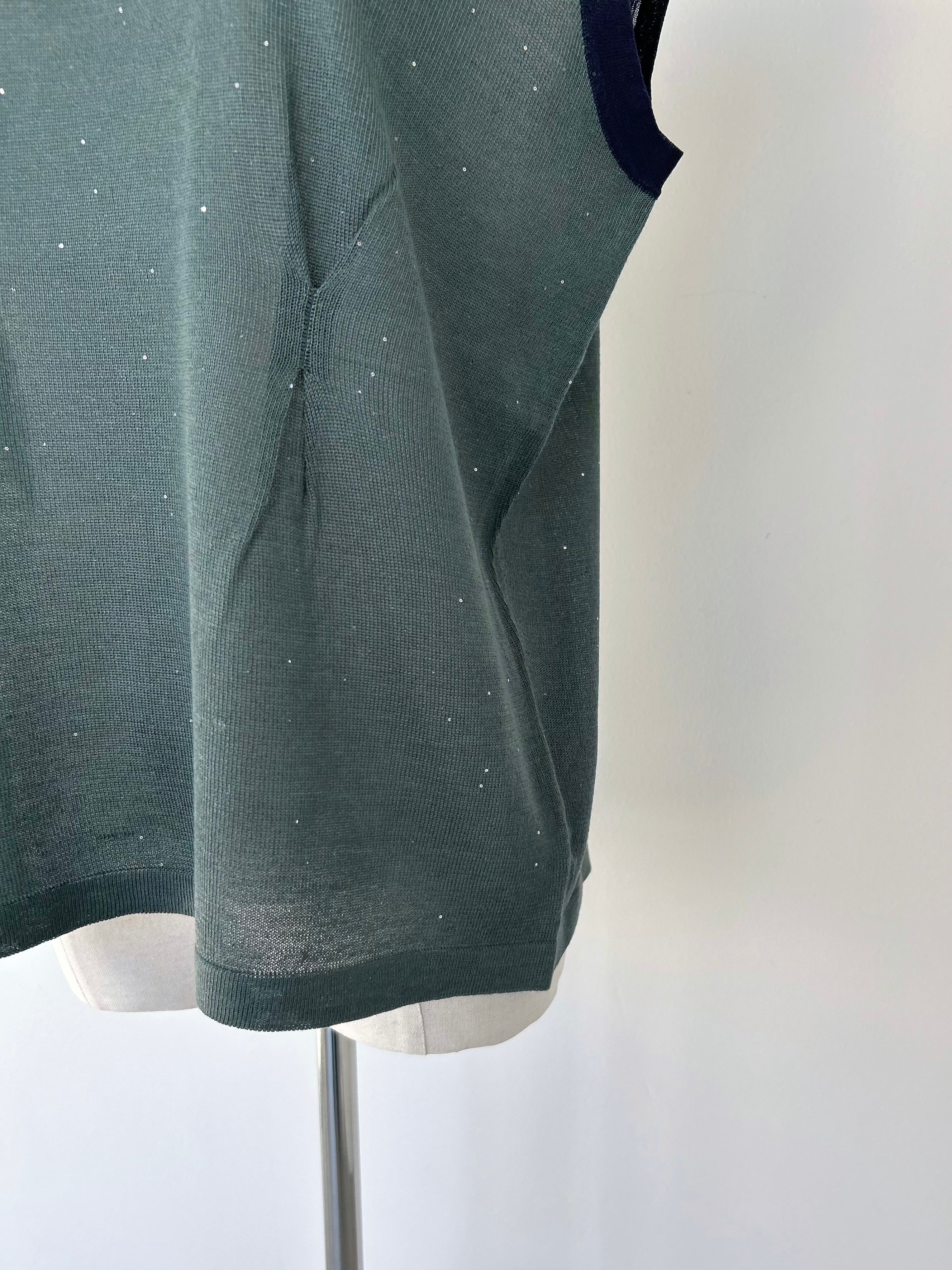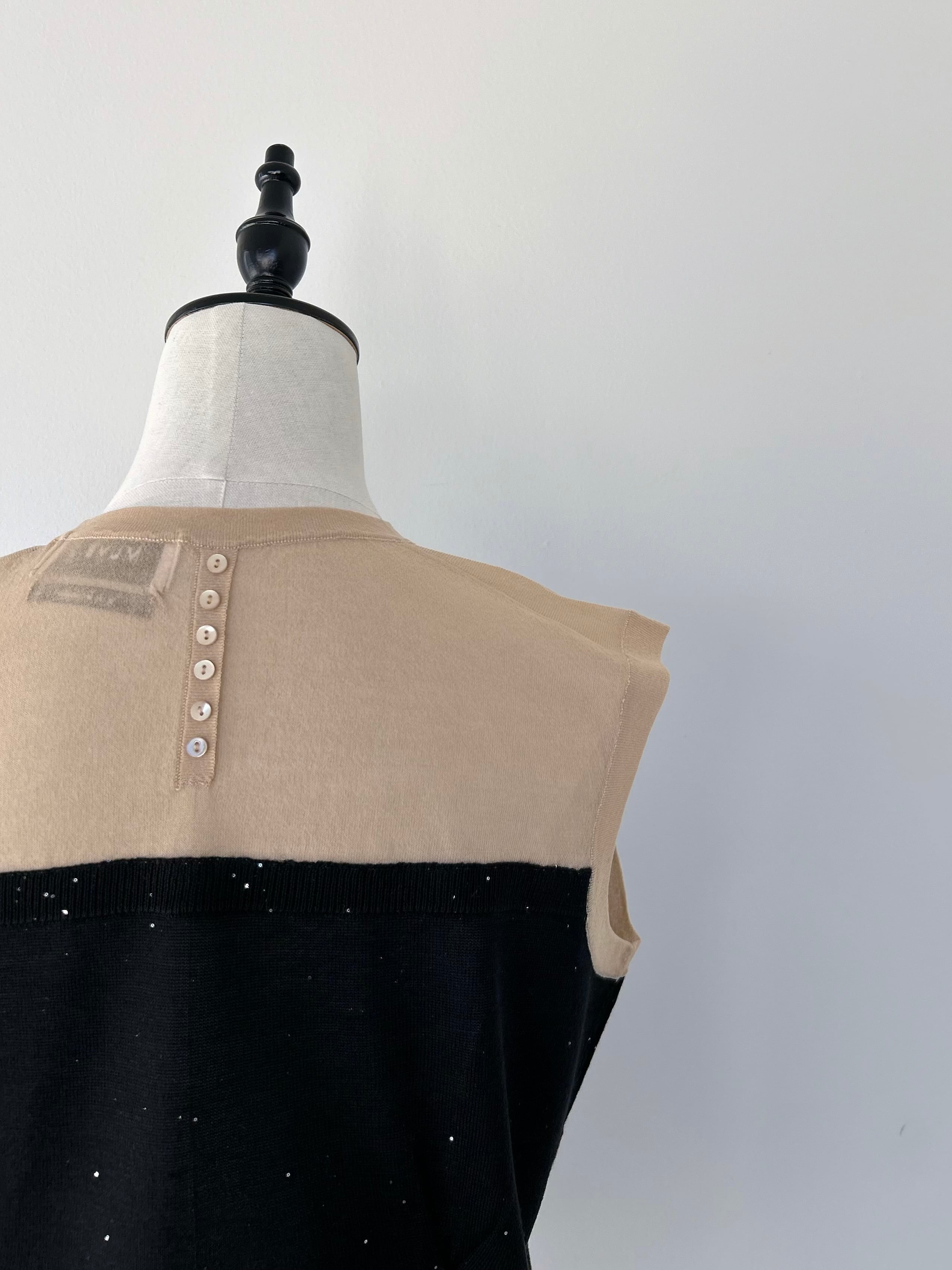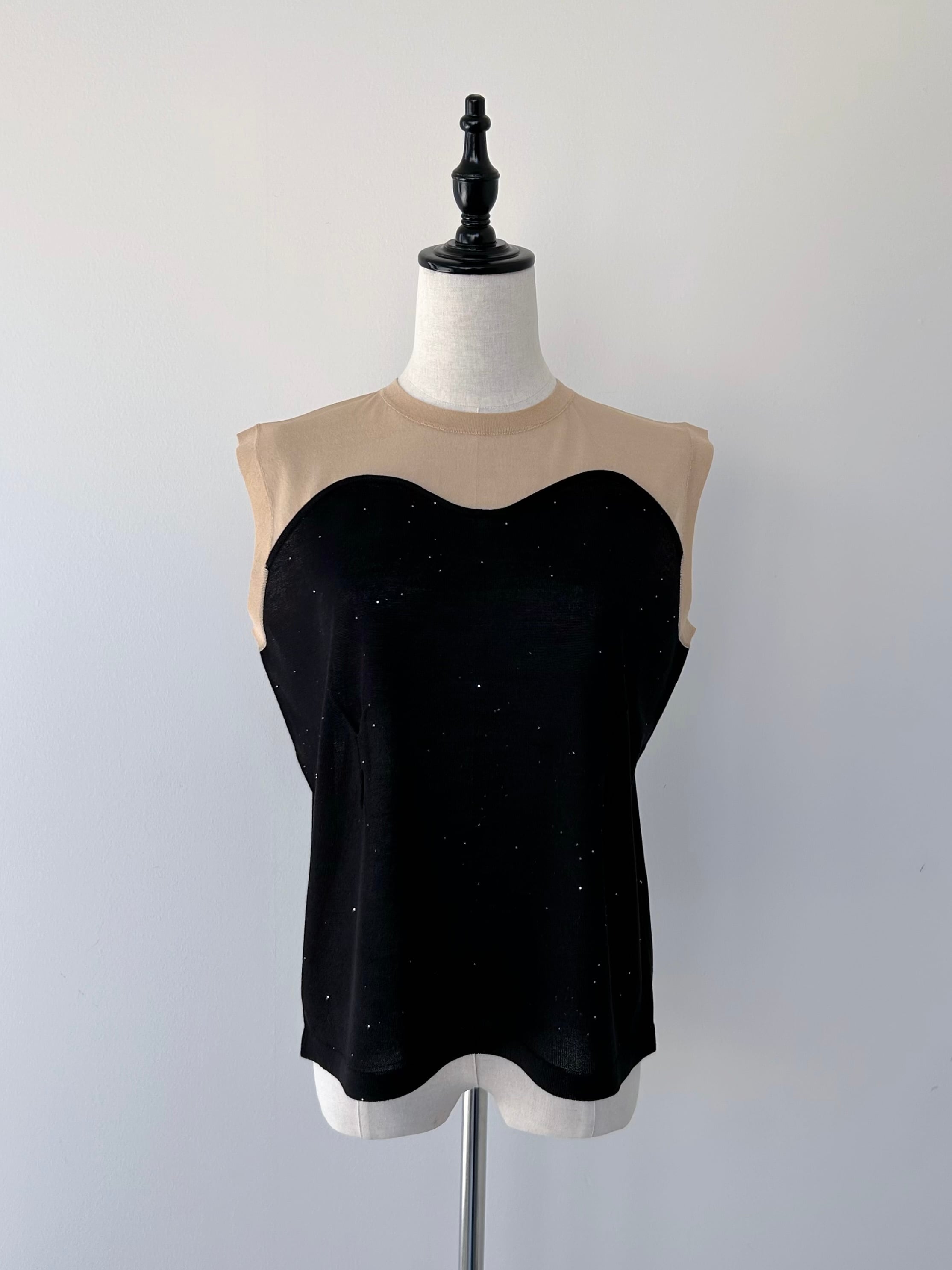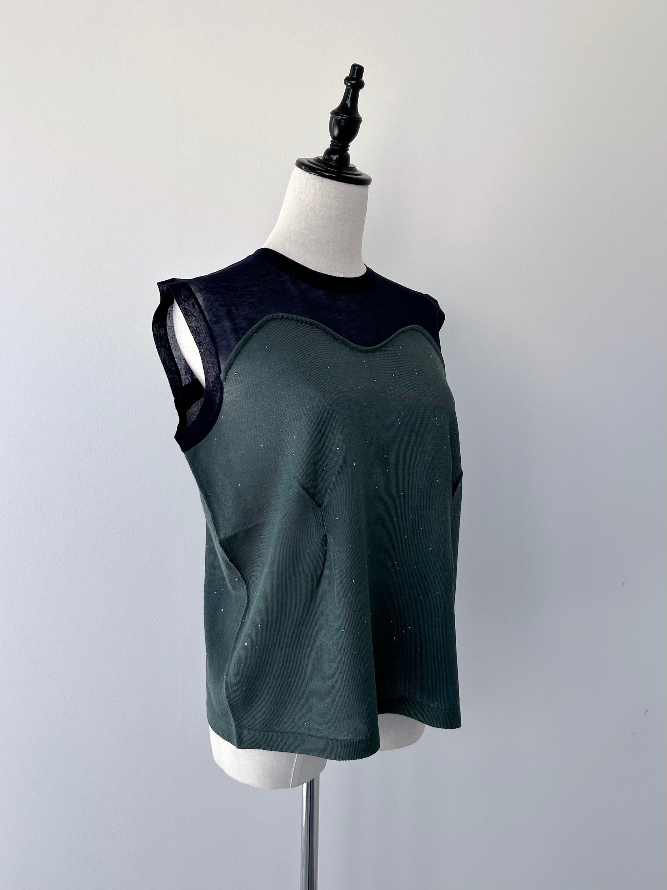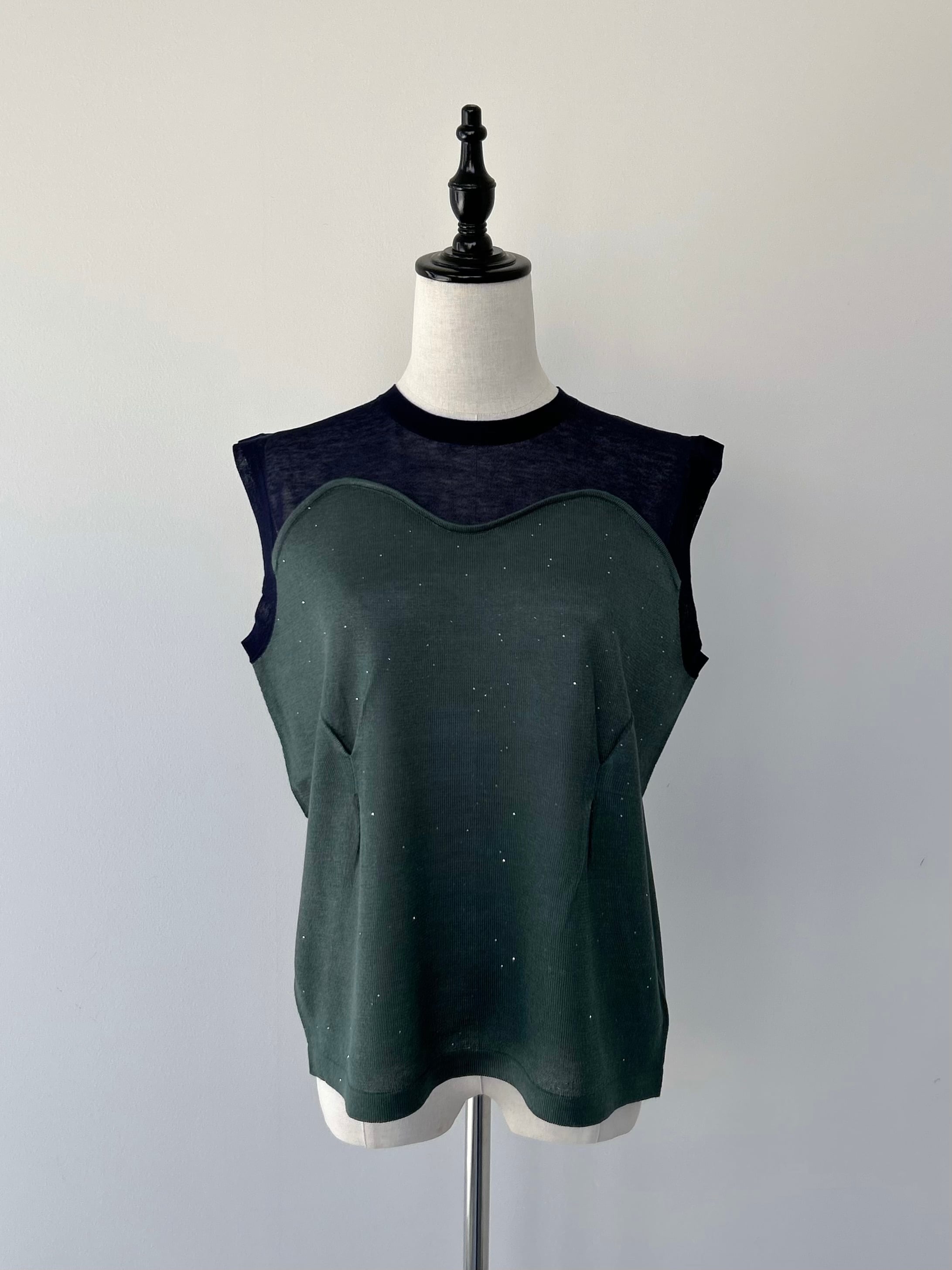 ビスチェにノースリーブニットをコラージュしたプルオーバー。