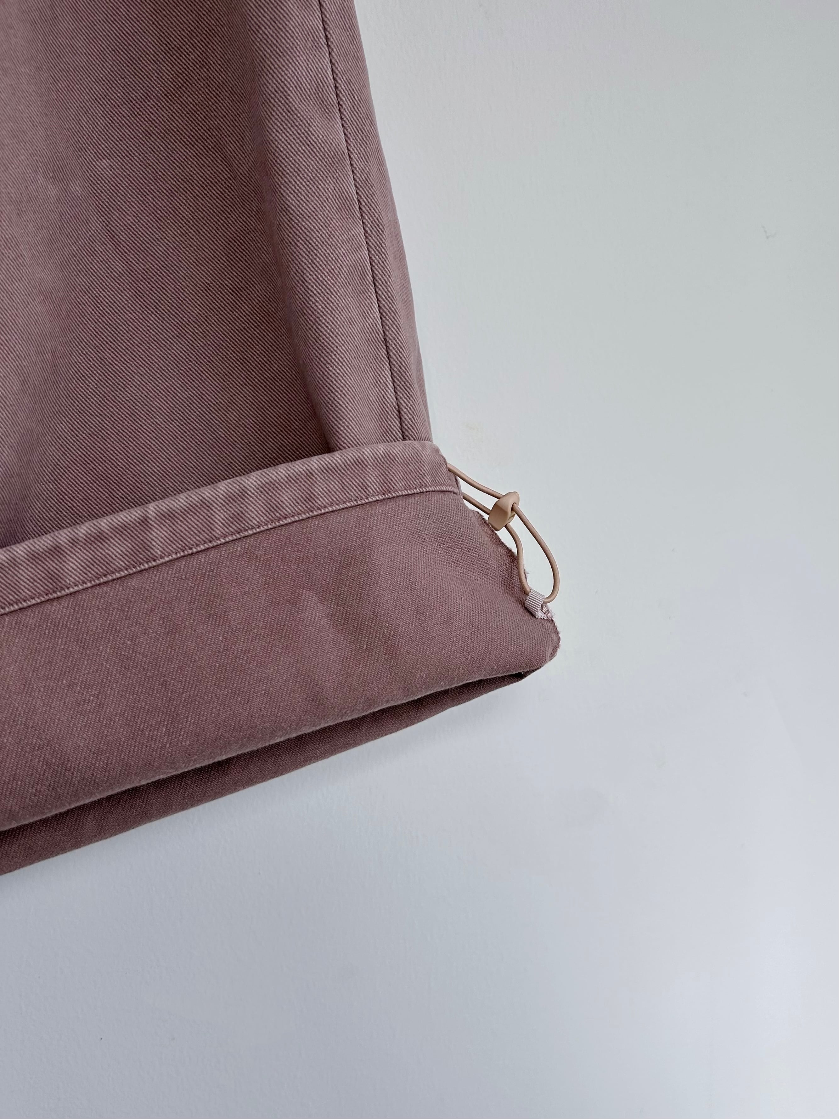 裾はドローコードを入れており、きゅっと絞っても着用でき、汎用性のあるデザインパンツ。