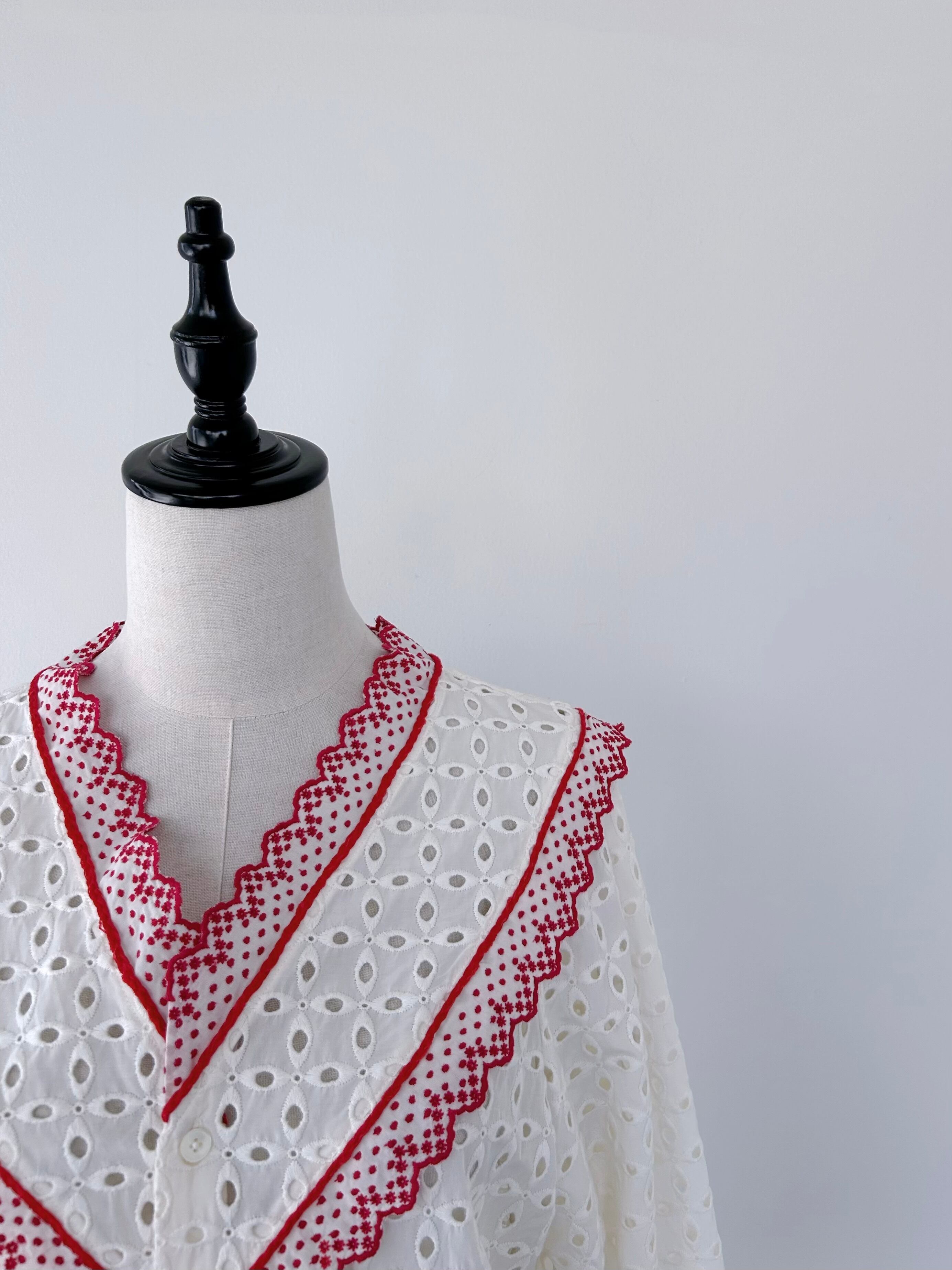 CURRENTAGE Lace Embroidery Blouse