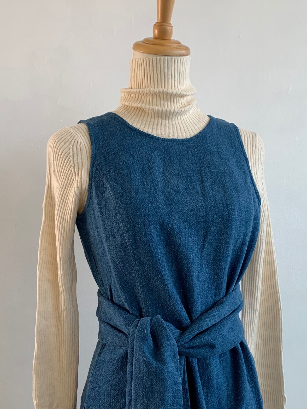 バックコンシャスな1枚。綿とラミー素材の混紡糸で無地のツイード風に仕上げた素材。