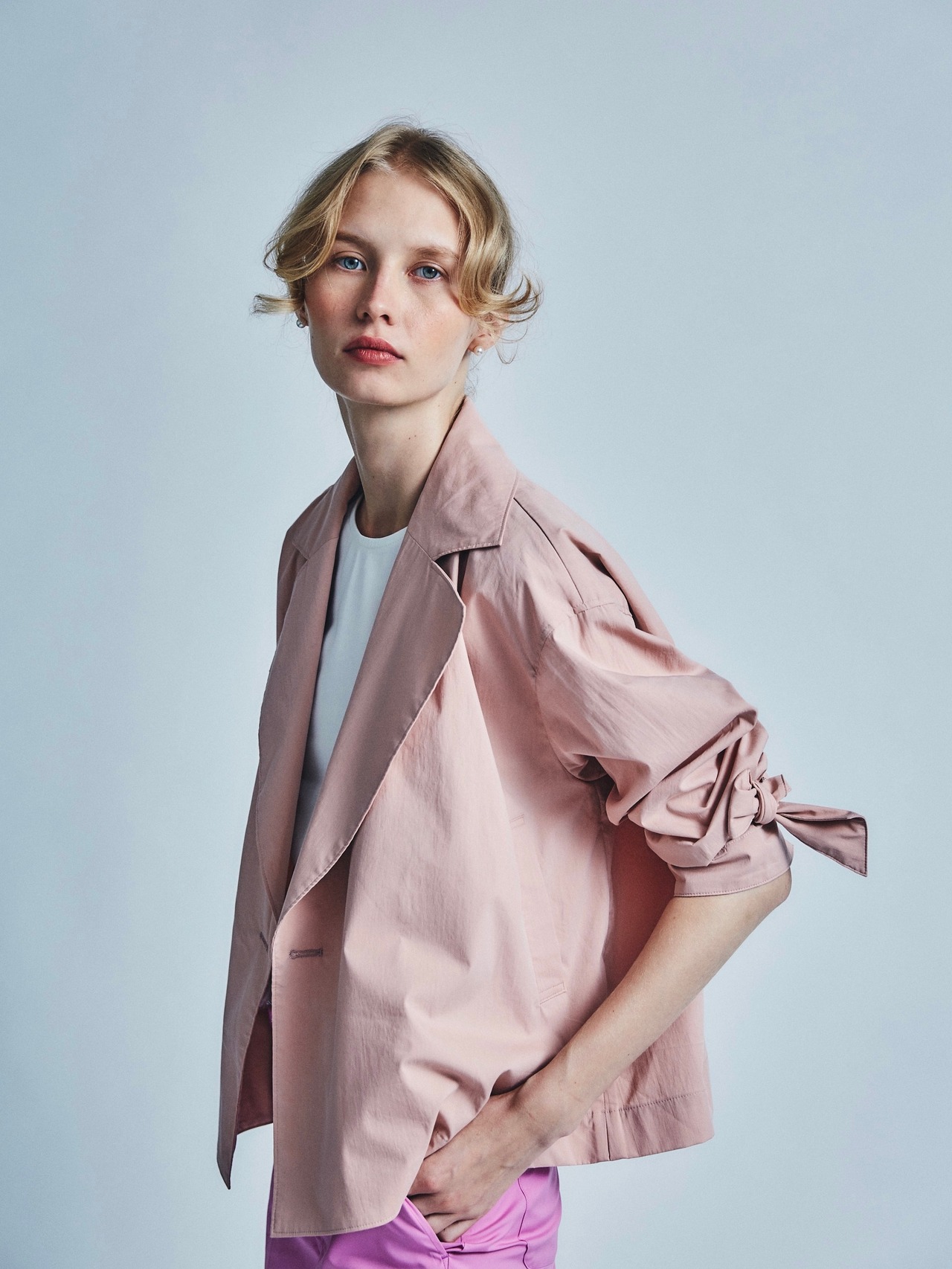 裏地がなく1枚なので軽やかに羽織れるアウター。