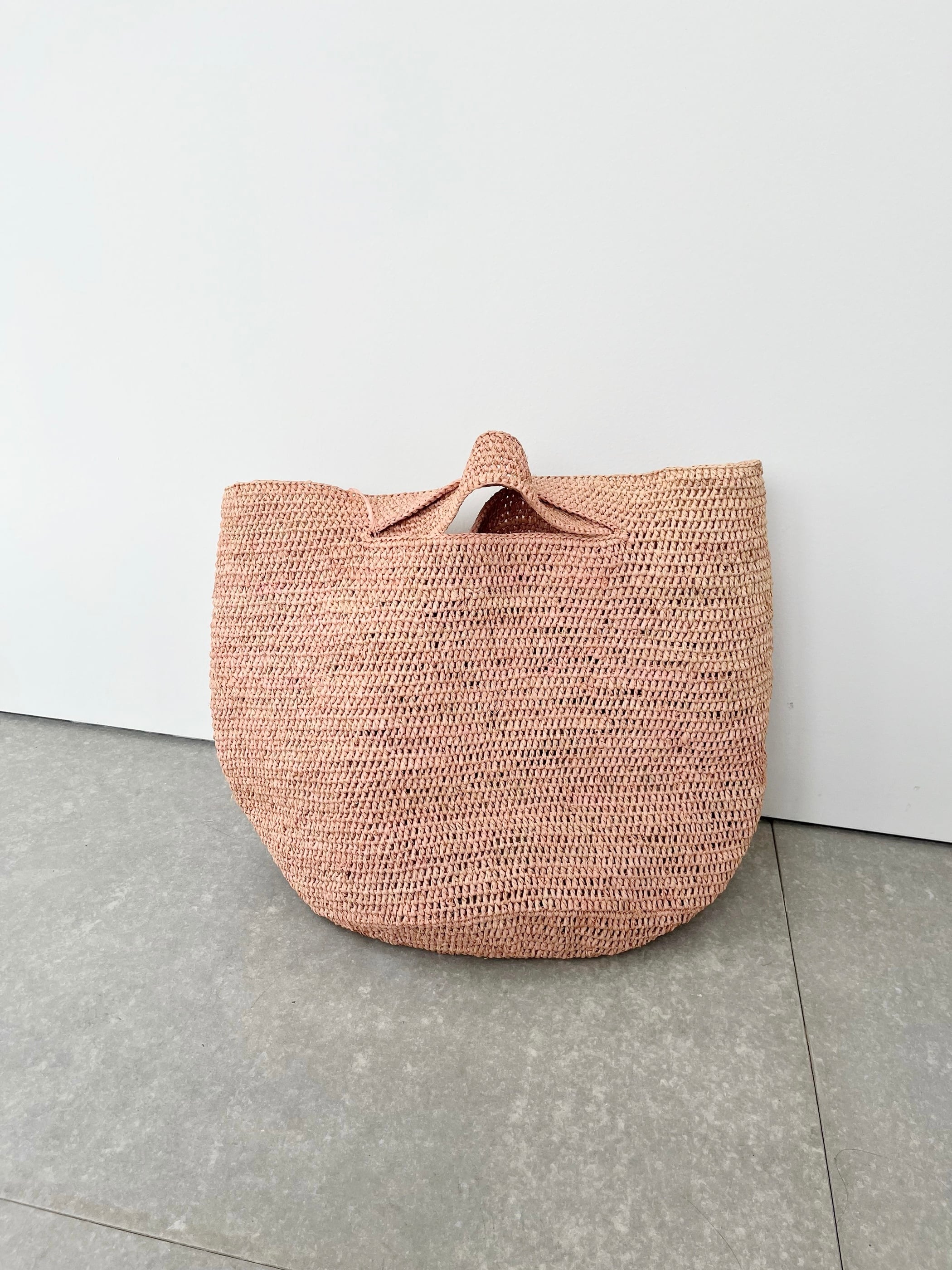 天然素材のラフィアを使用したビックサイズのハンドバッグ。