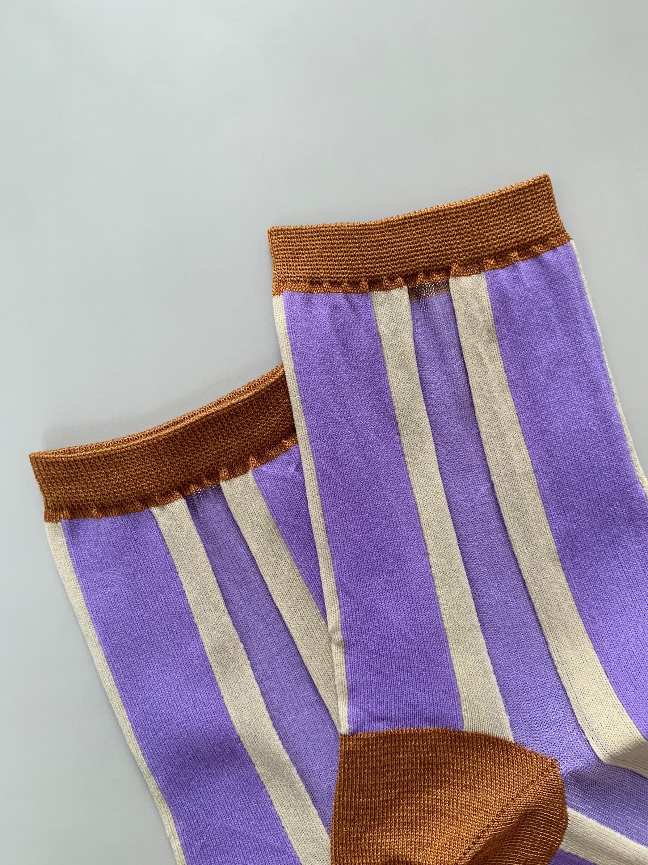 ストライプの配色が印象的。シアーな透け感のある生地感。