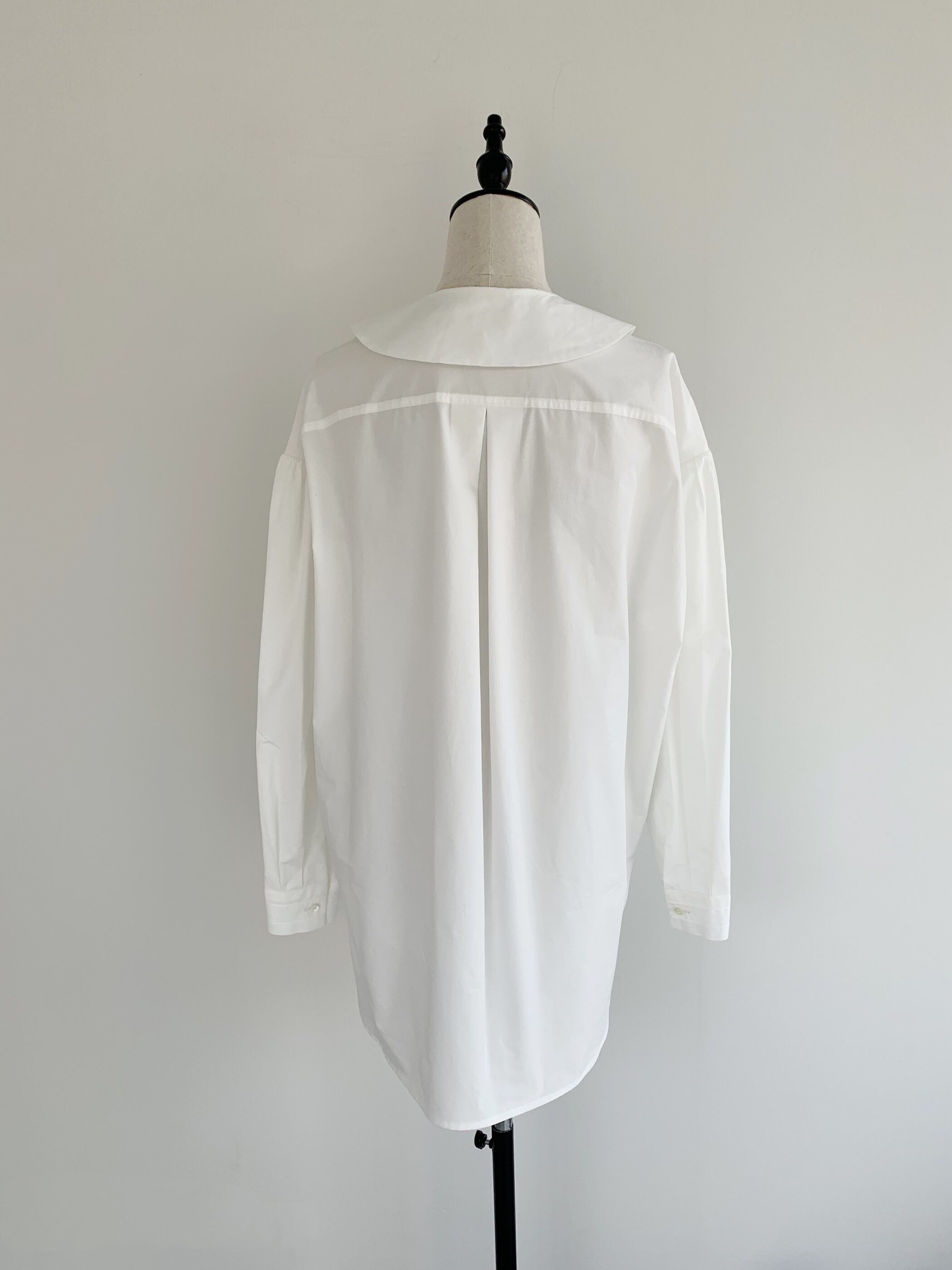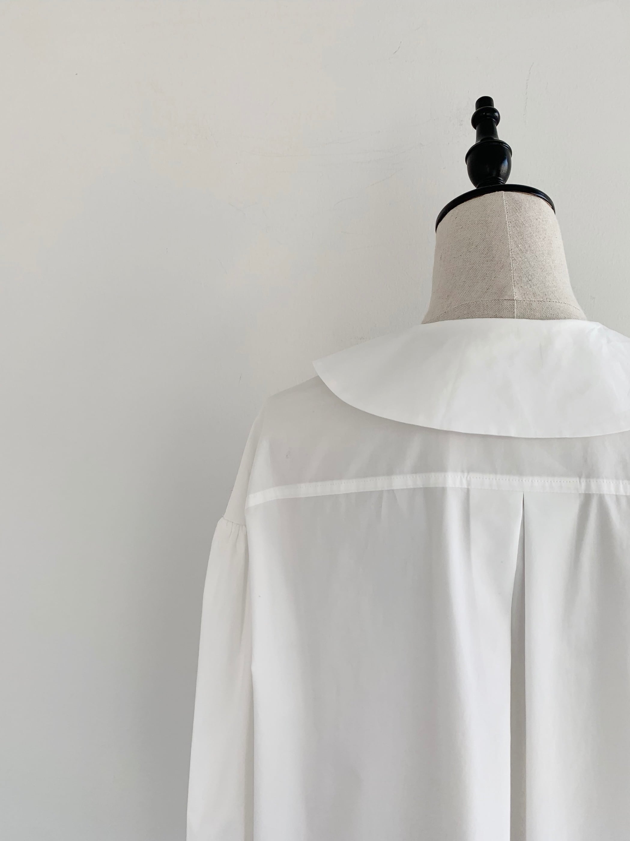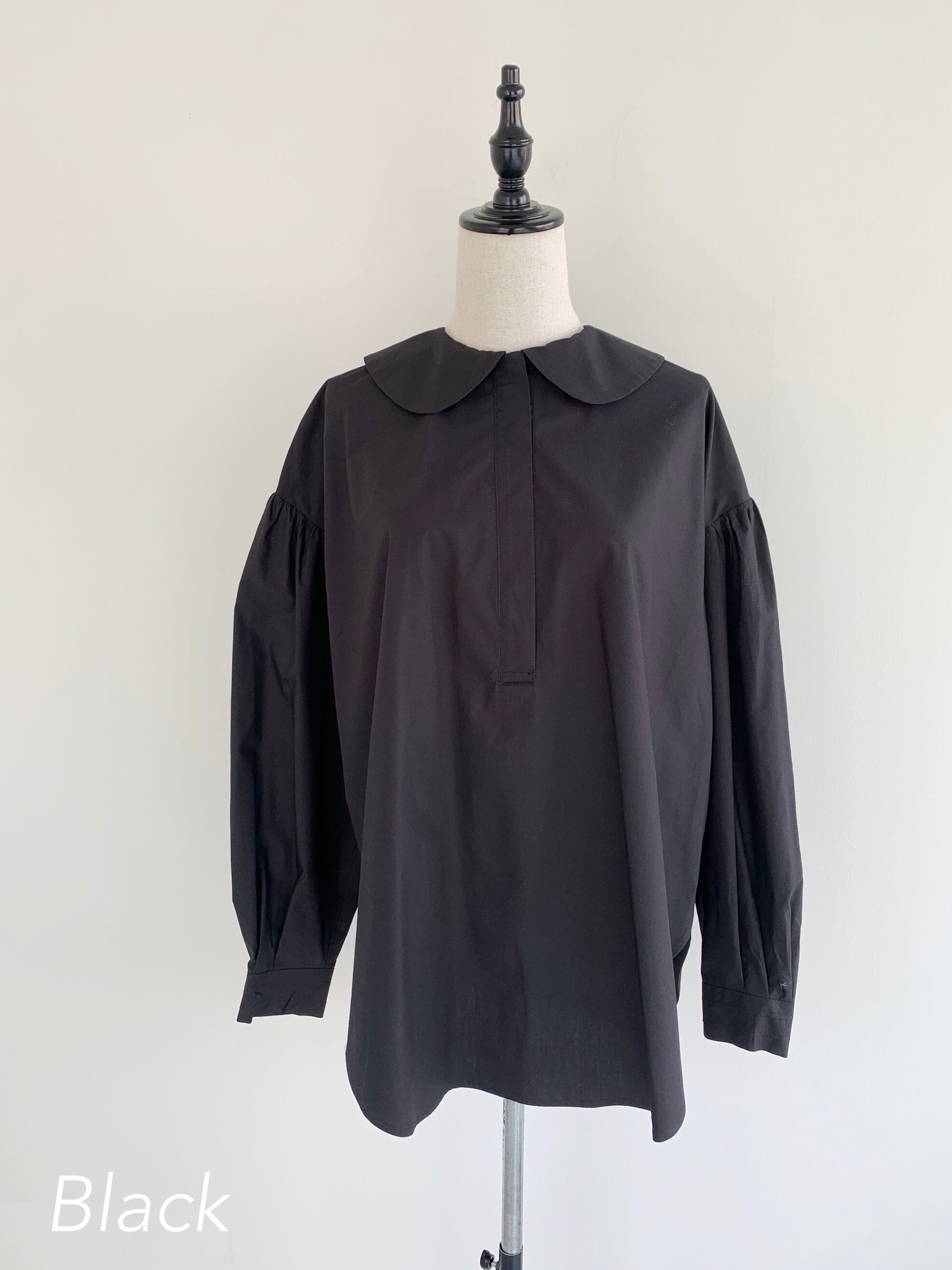 清潔感のあるぺたんとした丸襟が愛らしいコットンブラウス。