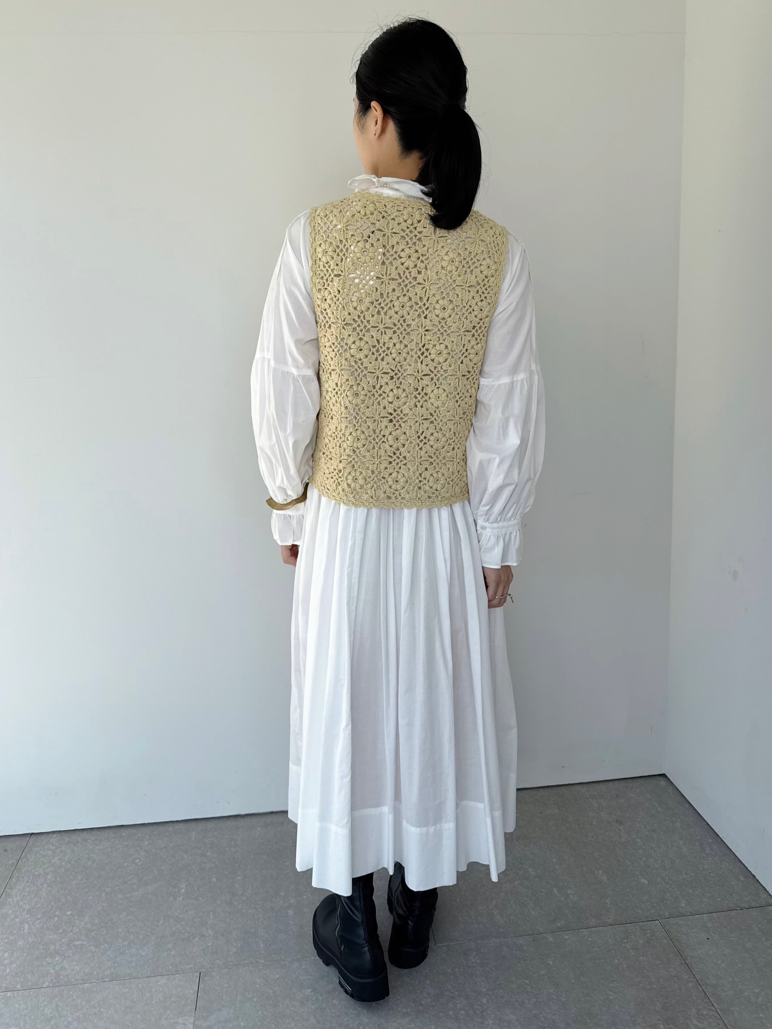 ウエストの細リボンで軽くウエストマークすると、 スカート部分に美しいフレアーが生まれ、 優雅な雰囲気を演出してくれます。