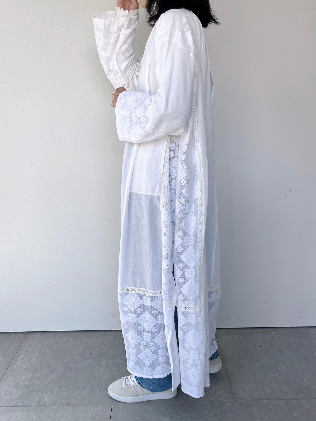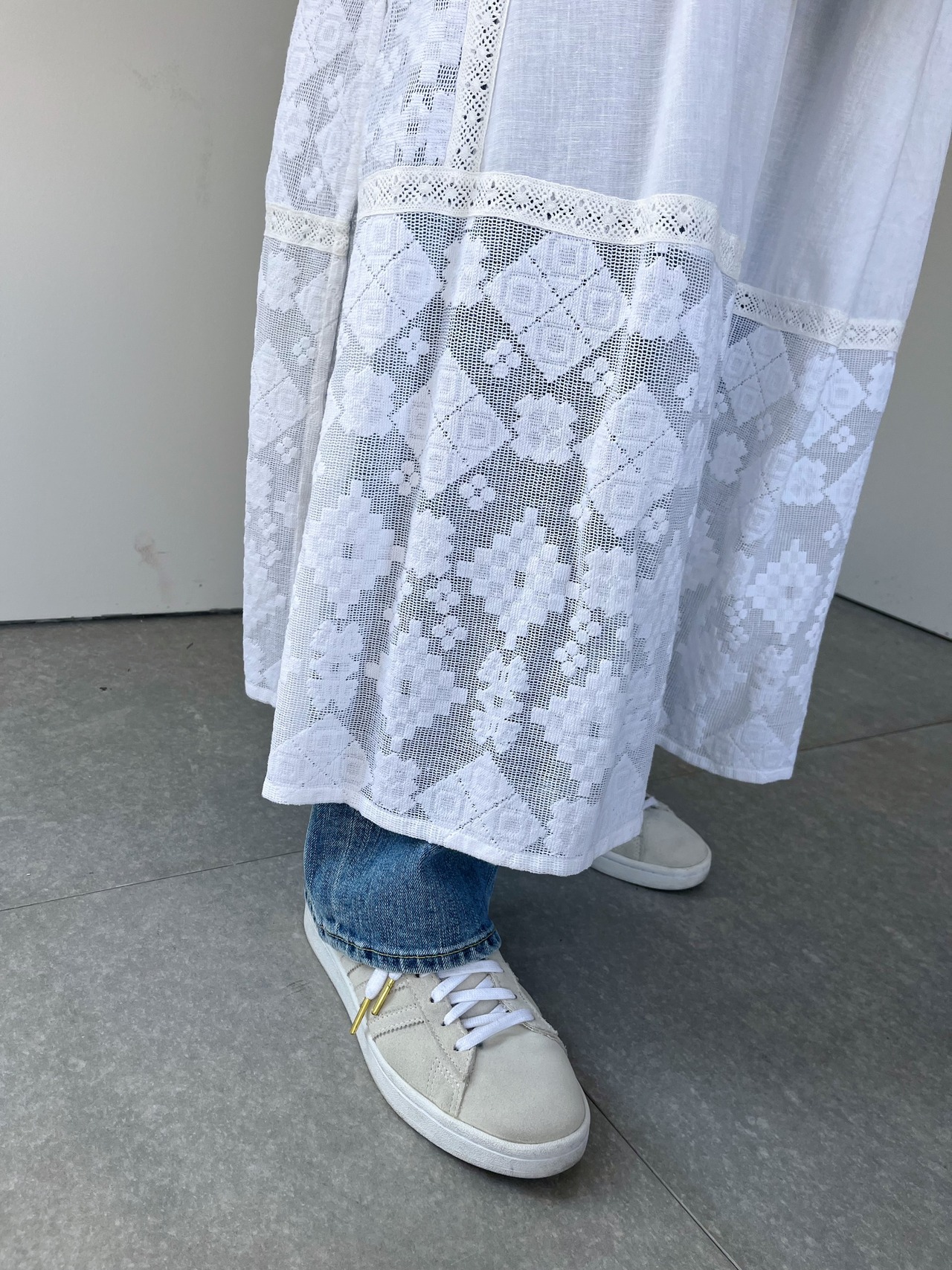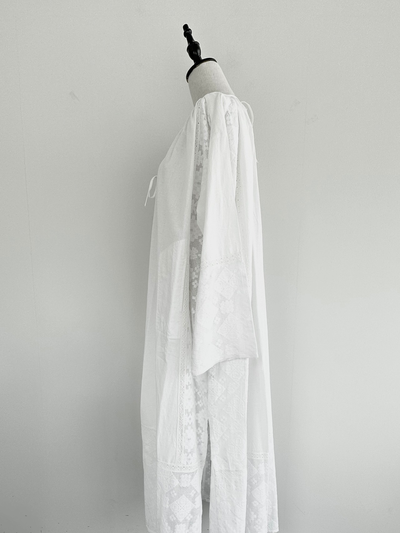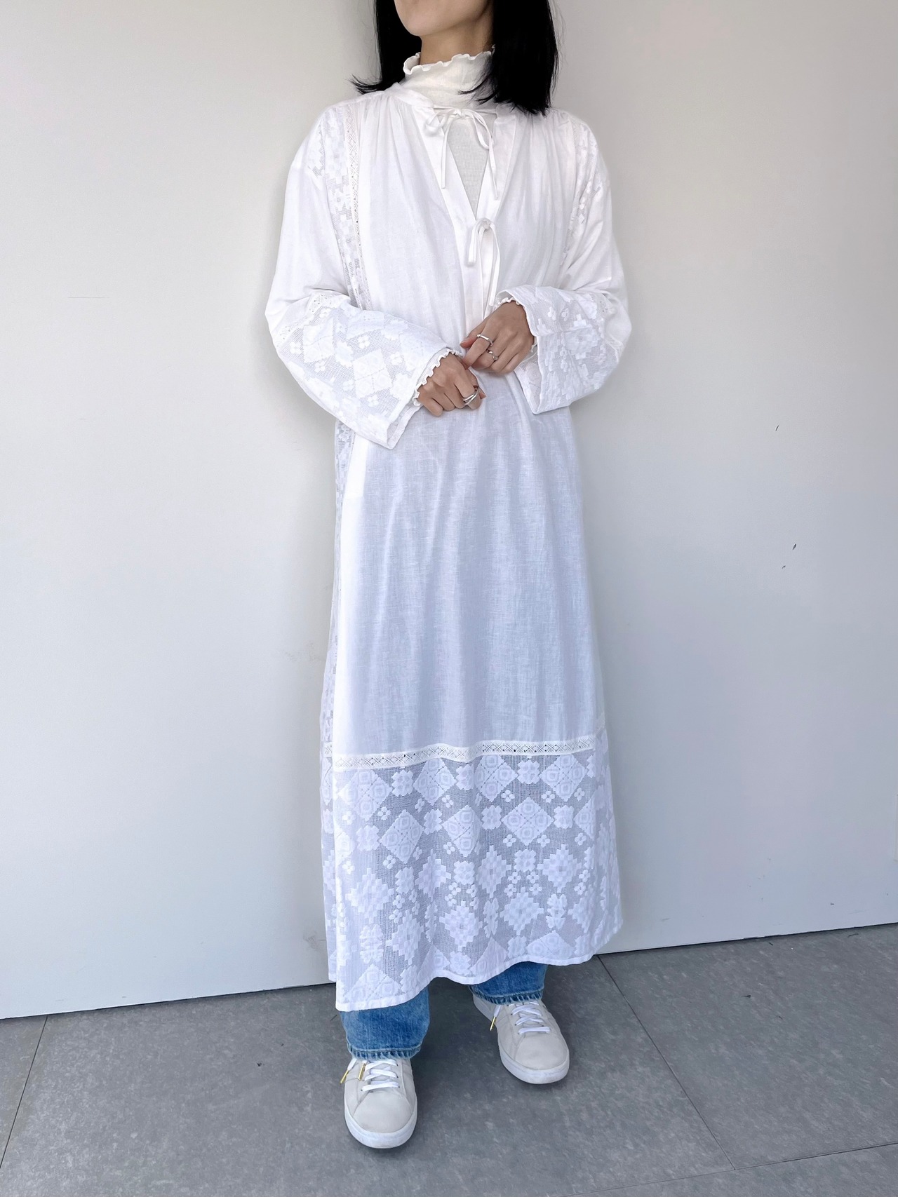 レースをドッキングさせたヴィンテージのワンピースから着想を得たロングワンピース。