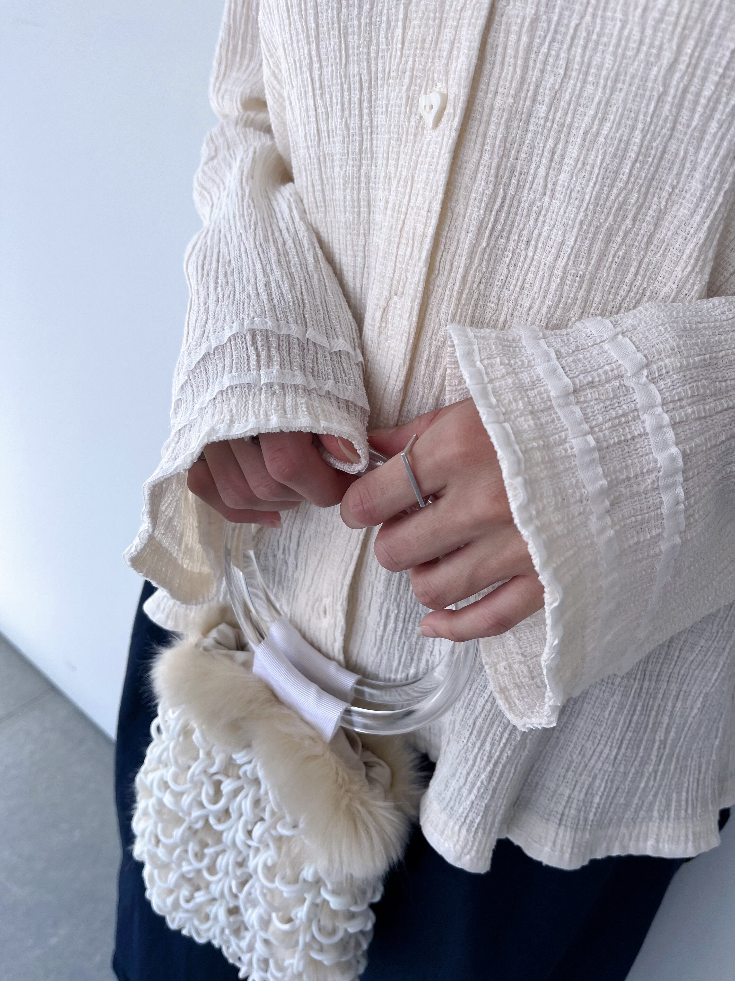つける角度で印象が変わり、重ね付けをしても動きがあってまた違った雰囲気で楽しめるアイテム。