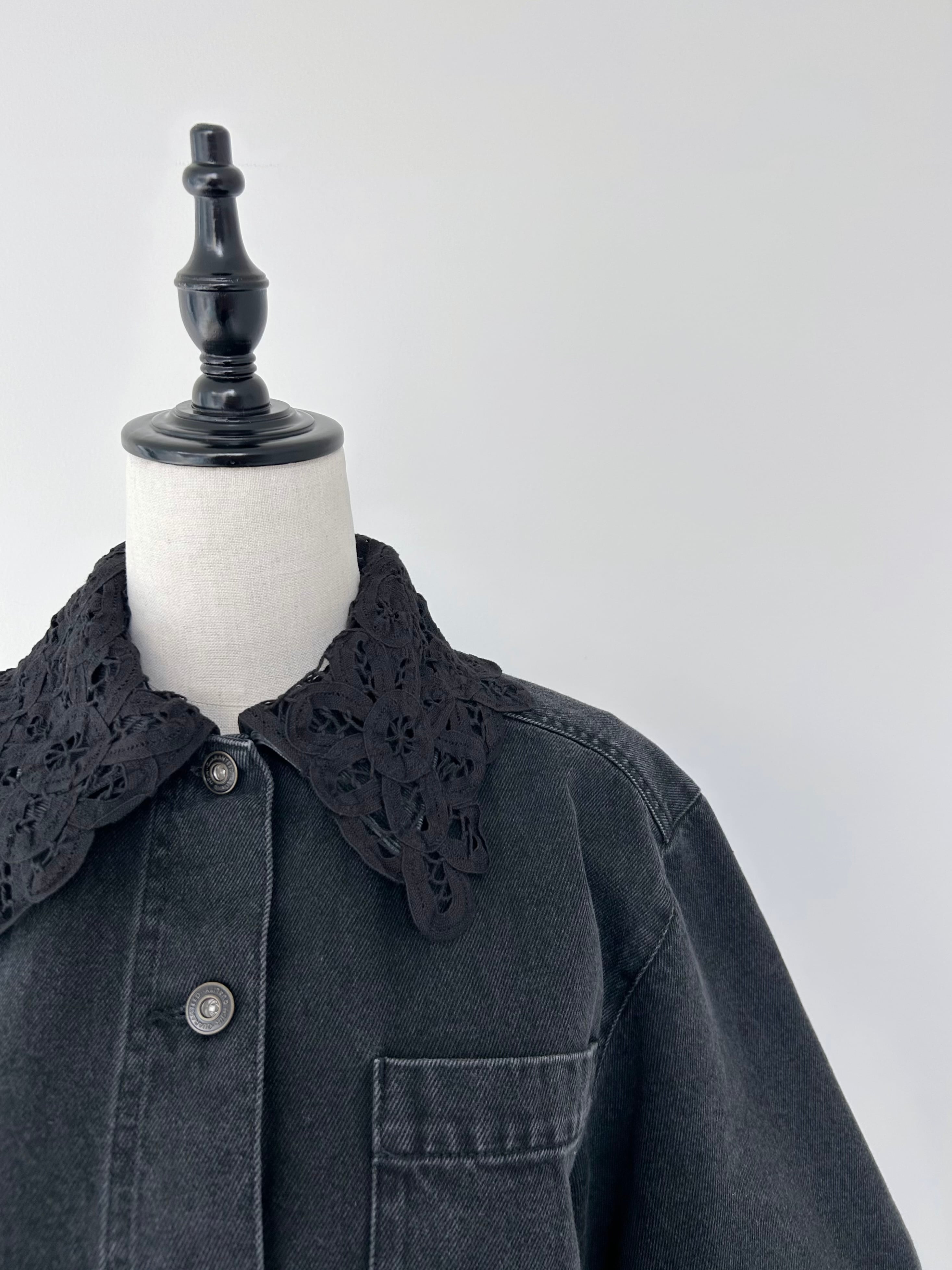 ロマンティックなバテンレースの襟がポイントになったデニムジャケット。
