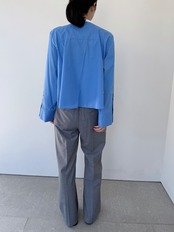 袖と身頃はゆったりとしながらコンパクト丈なスパンコールシャツ。